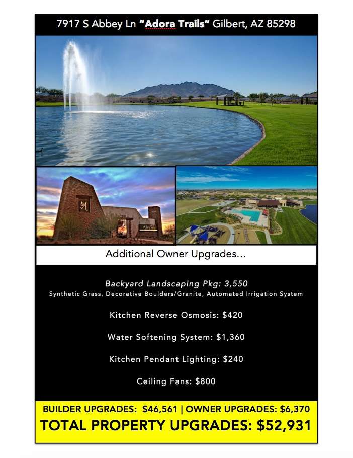 No Comparison & No Compromise. Illustrating the true definition of a move-in ready property in the desirable destination community of Adora Trails, original owners from Spring/2015, this Taylor Morrison ENERGY STAR home offers the open concept “Lily” floor plan, 4 beds, 2 baths, great room w/vaulted ceilings, upgraded kitchen design & $52,931 in BUILDER & OWNER UPGRADES! Lightly lived in & well cared for, you’ll see for yourself in person! The selling party has proactively maintained the home inside and out… really is brand new. PLUS! Located in Award Winning Chandler Unified School District, rated #1 school district two years running! Send your children to school with confidence!