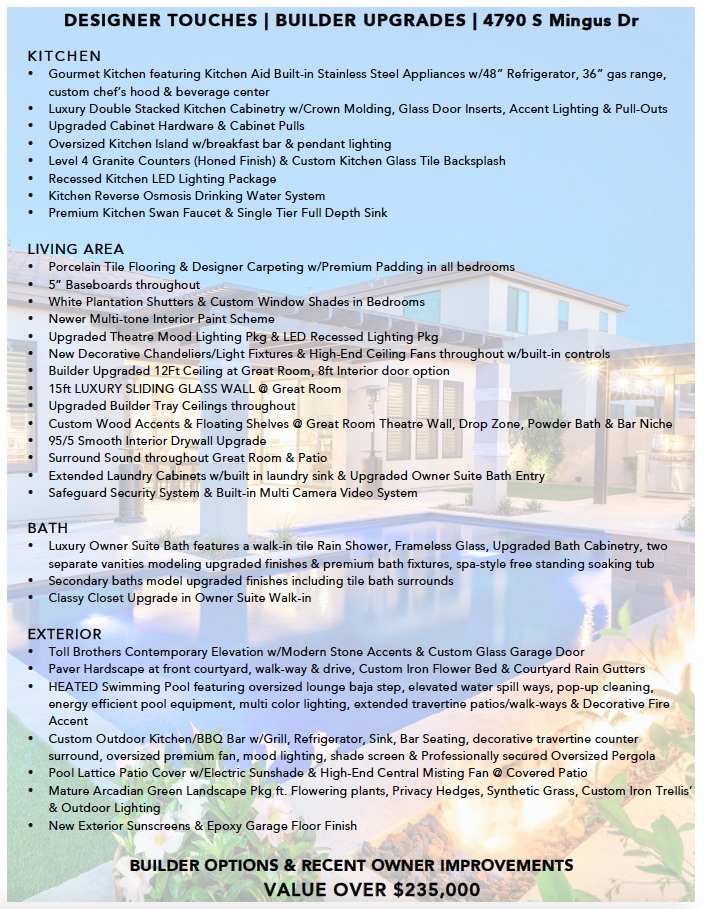 Designer Dream Residence Just Listed | Toll Brothers | South Chandler | $775,000