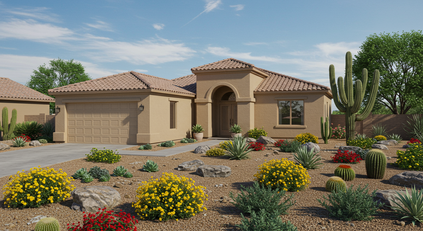 Semi-Custom Front Elevation w/ Cactus Garden & Tumbled Paver Patio