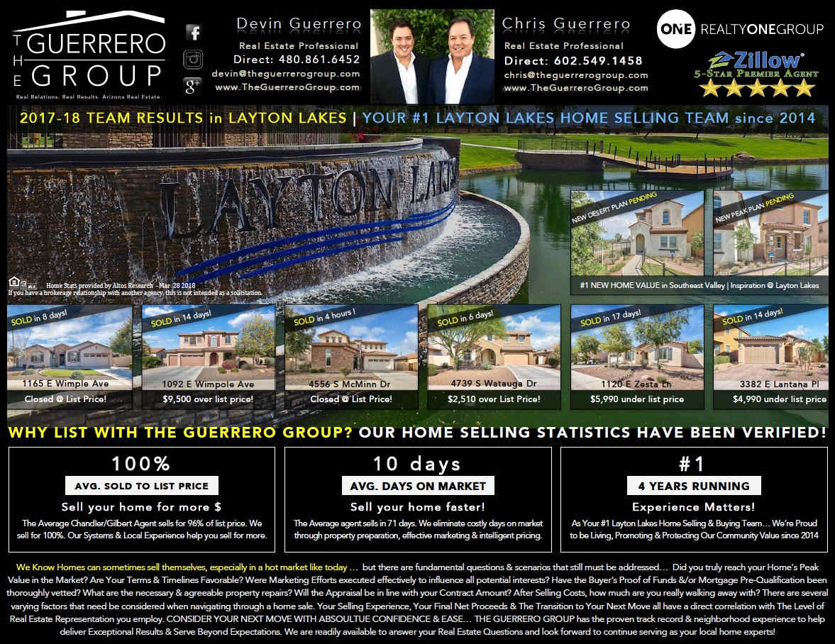 For more than a decade, Layton Lakes has been the destination community known for its picturesque scenery and neighborhood charm. Its warm and inviting: full of friendly neighbors, an engaging lifestyle, and exceptional educational opportunities. Featuring several tree-lined parks, playgrounds, tennis, basketball & volleyball courts, soccer & baseball fields, lakes, streams, waterfalls, and splash pads all surrounded by scenic water-lined walking trails. Nestled between both the thriving City of Chandler & Town of Gilbert, residents take advantage of the countless nearby amenities including the 101 & San Tan 202 freeways, shopping, dining, entertainment, airports, hospitals, booming business corridors, new Southeast Valley Developments and #1 Chandler Unified School District, now two years running.