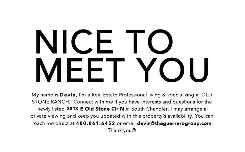 Consider this your NEW DREAM home in South Chandler’s OLD STONE RANCH… Don’t miss your chance to make this your New Home for 2018, it will absolutely be gone after the weekend! Connect with Your OLD STONE RANCH REAL ESTATE TEAM Direct to arrange a private viewing and for all questions answered, we’re here to serve your immediate real estate needs & welcome your call! Devin Guerrero 480.861.6452