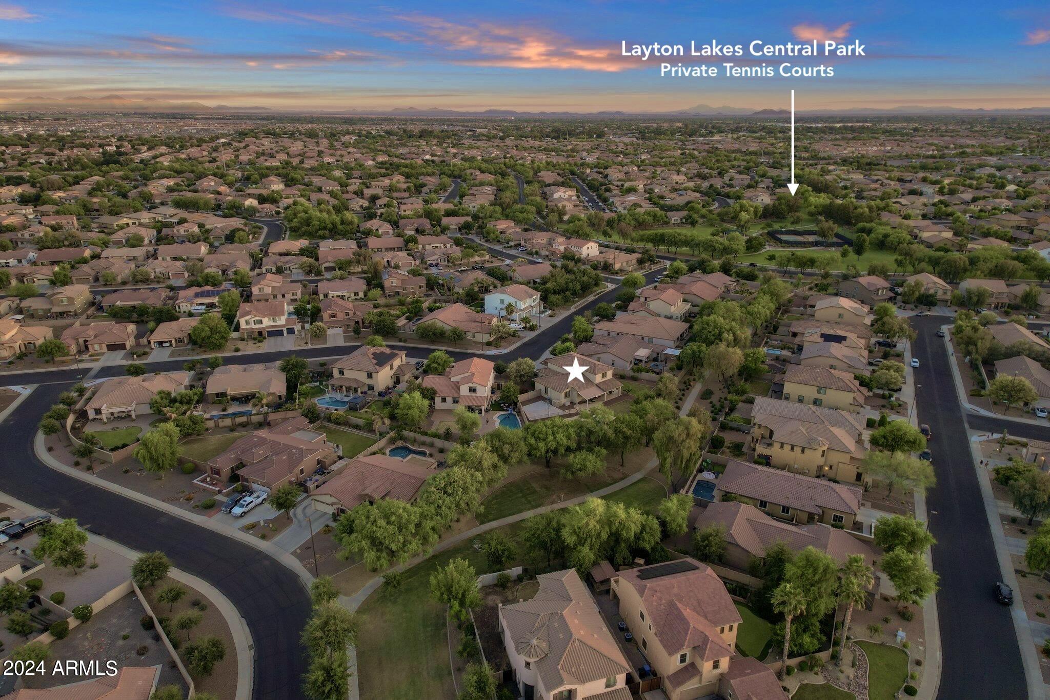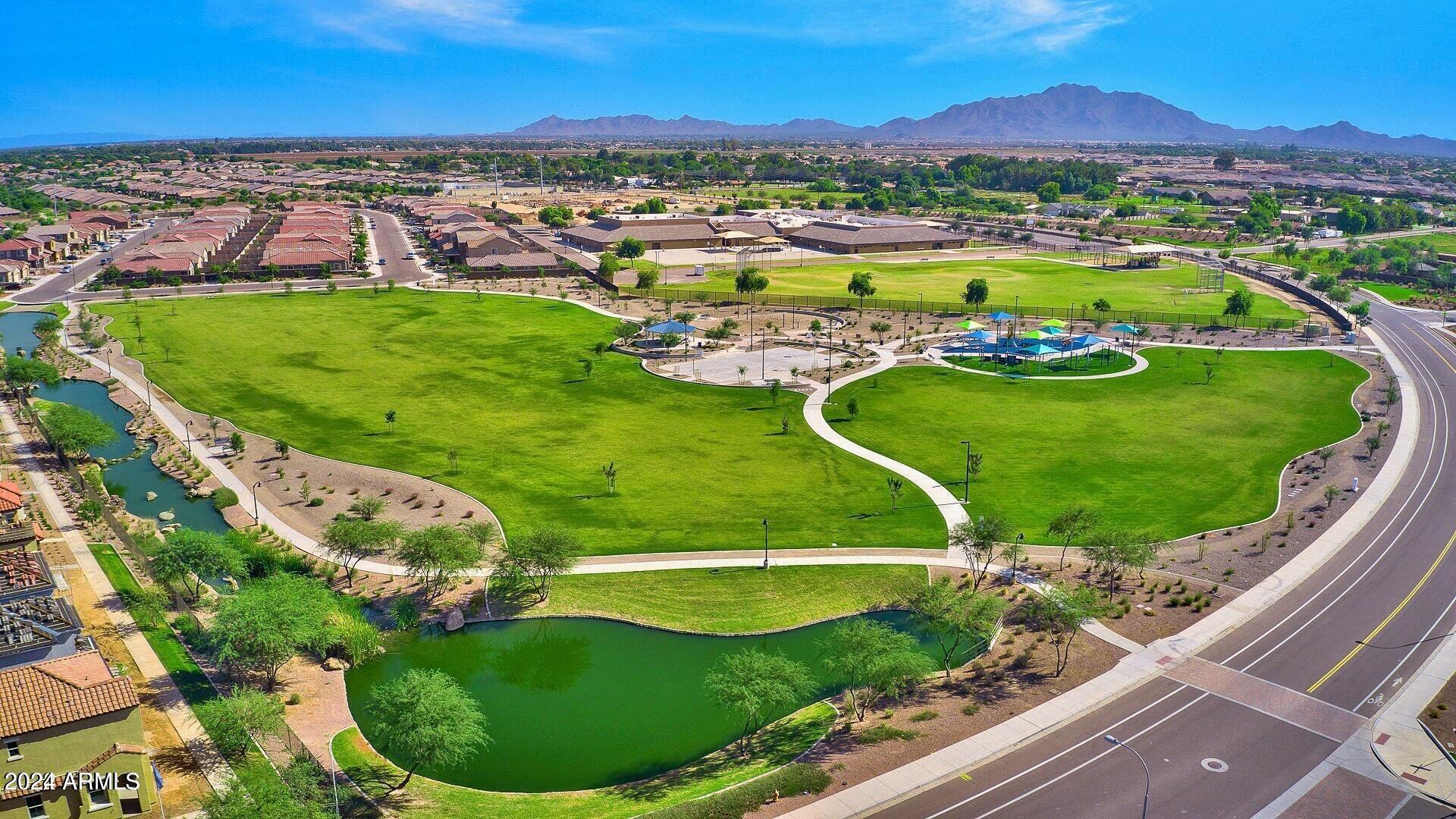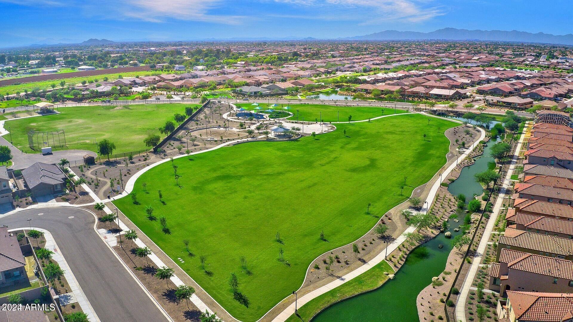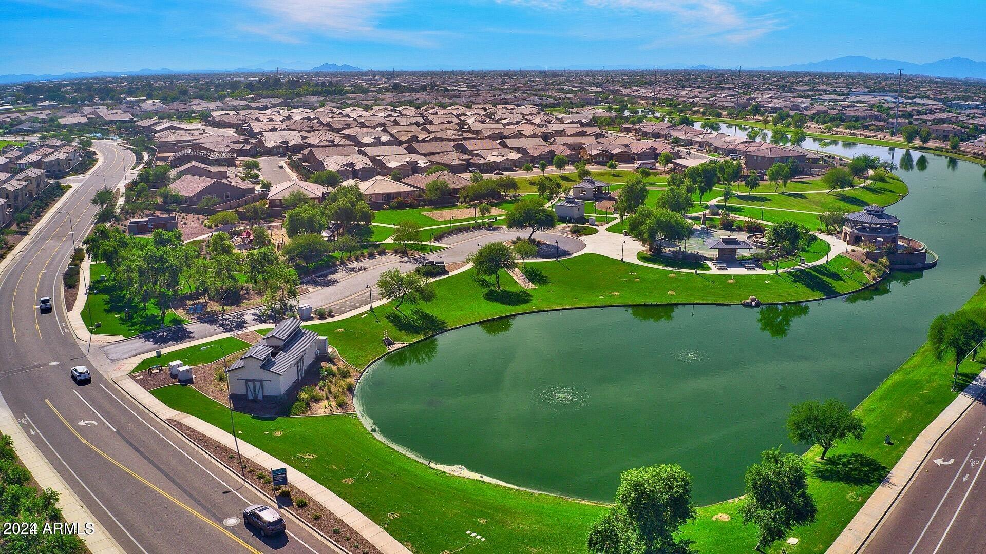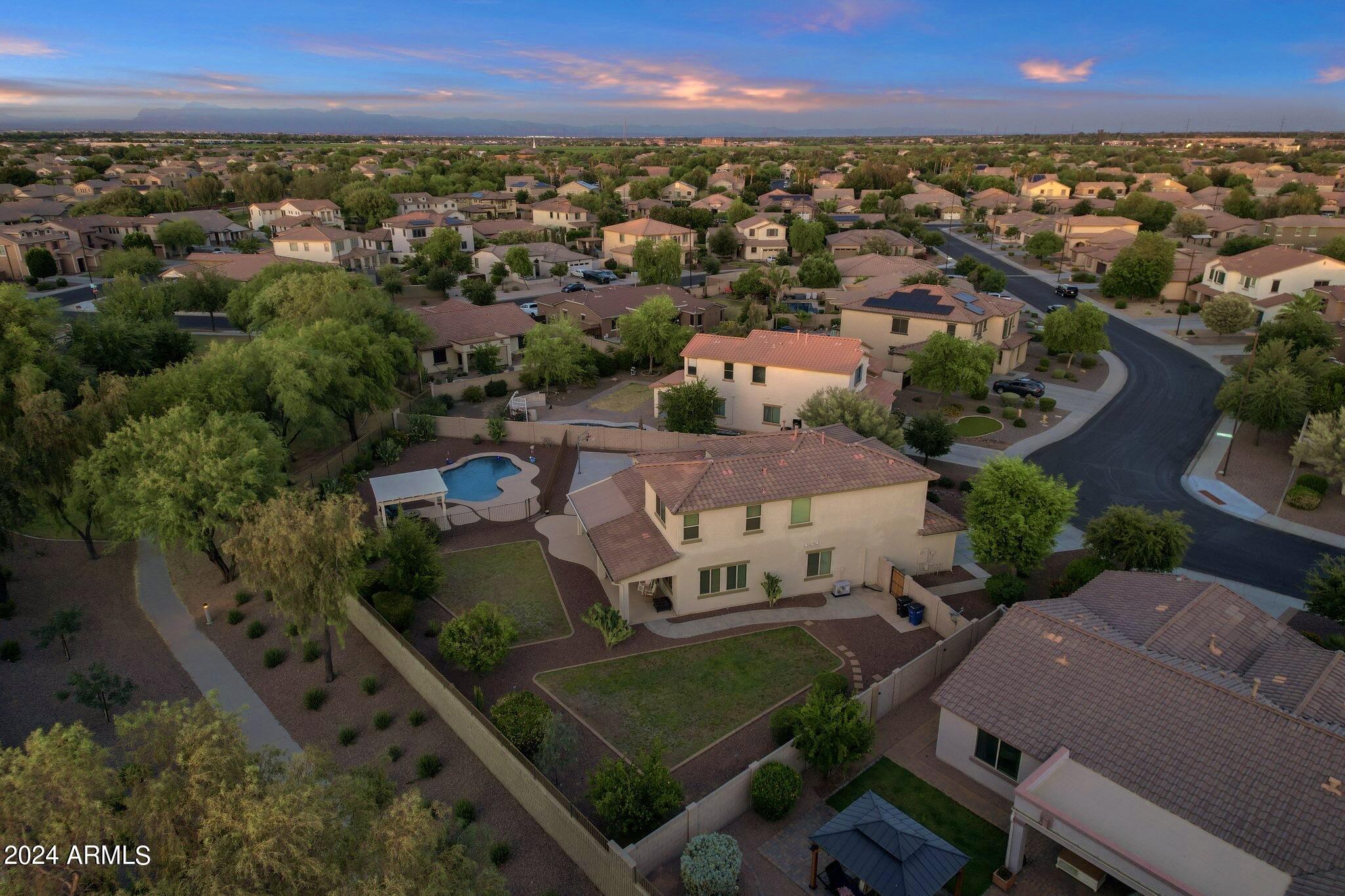 Rare Opportunity to Live in South Gilbert's Destination Master Plan Community of Layton Lakes! This new market offering portrays picture perfect living in every way. Imagine Living in this Lovely Ranch Inspired Family Home Displaying Craftsmanship, Designer Home Interior with Luxury Finishes & Countless Upgrades, Today's Open Floor Plan w/ expansive Home Spaces & Generous Owner's suite w/Spa-Style Bath. Fully Landscaped Premium Interior Lot over 1/3 acre that borders a Beautiful Greenbelt. Enjoy the summer days & nights in your outdoor escape featuring Mature Arcadian Green Landscape w/Flowering Plants & Trees, Sparkling PebbleTec Swimming Pool, Sports Court, Large Grassy Play Areas & expanded patio space w/ Pergola perfect for outdoor furniture & fire pit. THIS IS THE ONE! For more than a decade, Layton Lakes has been the destination community known for its picturesque scenery and neighborhood charm. It's warm and inviting, full of friendly neighbors, engaging lifestyle, and exceptional educational opportunities. Featuring several tree-lined parks, playgrounds, tennis, basketball and volleyball courts, soccer and baseball fields, lakes, streams, waterfalls, and splash pad all surrounded by scenic water lined walking trails. Nestled between both the thriving City of Chandler & Town of Gilbert, residents take advantage of the countless nearby amenities including the 101 & San Tan 202 freeways, shopping, dining, entertainment, airports, hospitals, booming business corridors, and new Southeast Valley Developments.