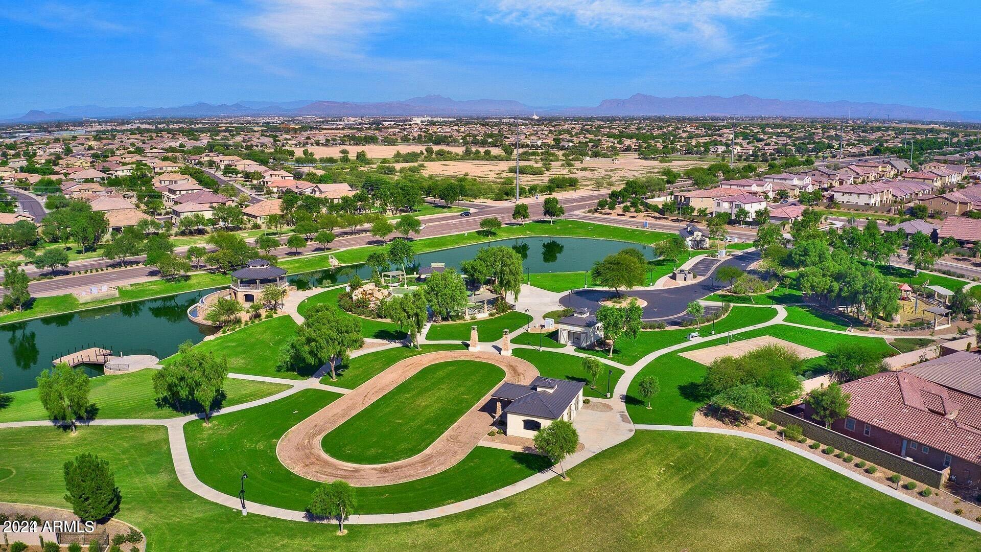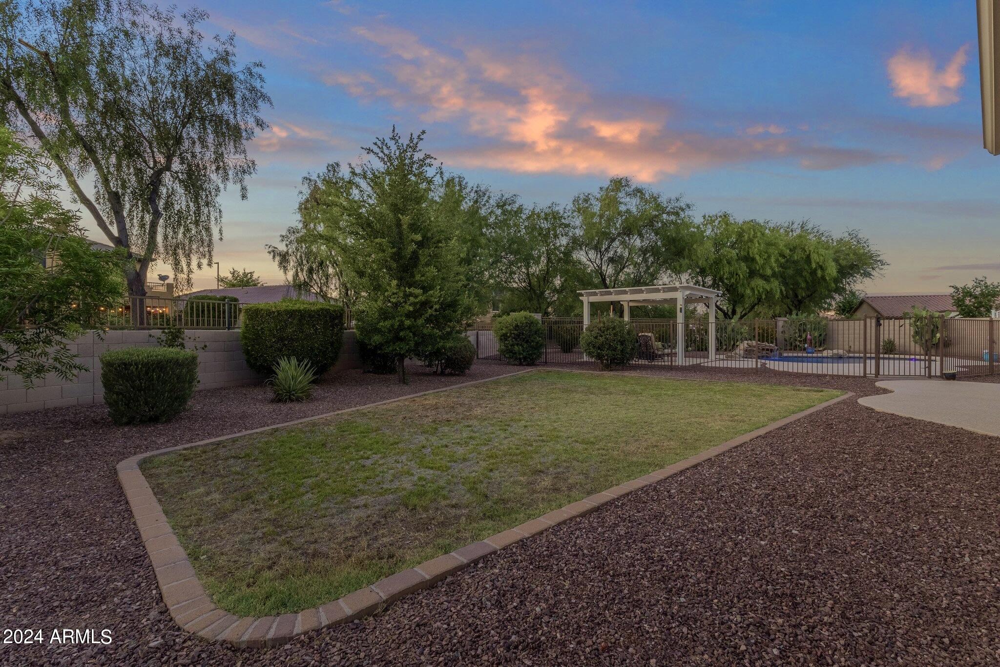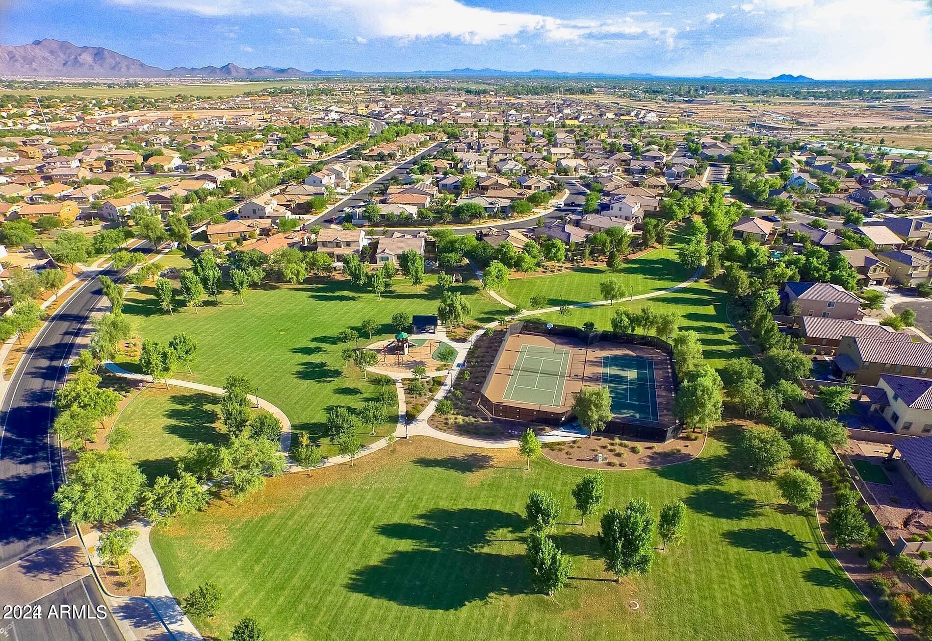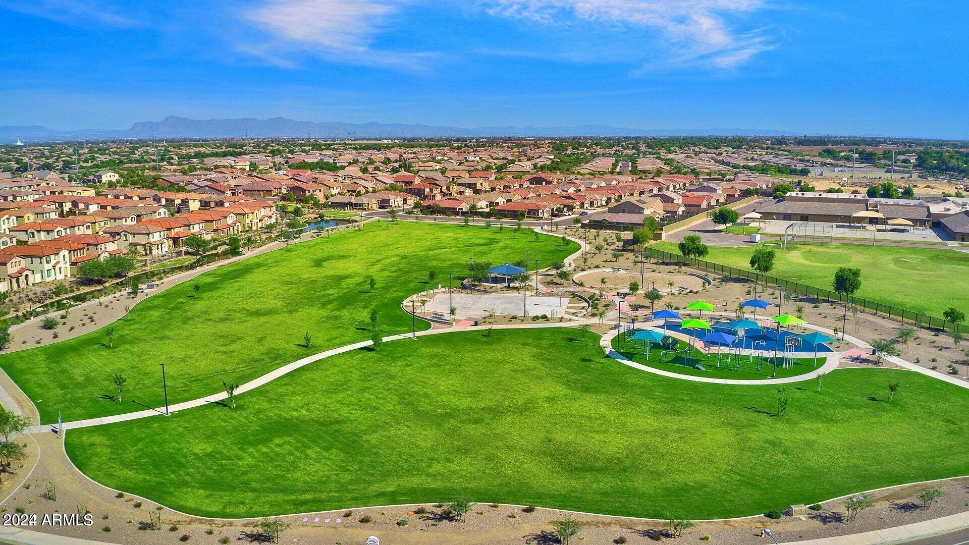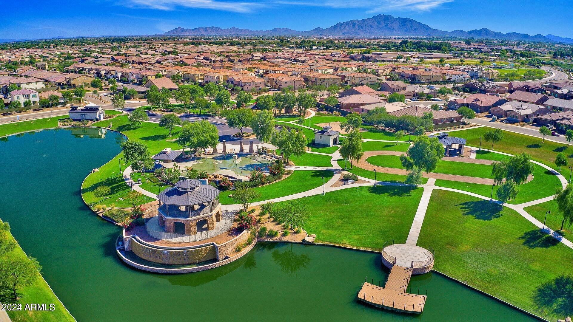 Rare Opportunity to Live in South Gilbert's Destination Master Plan Community of Layton Lakes! This new market offering portrays picture perfect living in every way. Imagine Living in this Lovely Ranch Inspired Family Home Displaying Craftsmanship, Designer Home Interior with Luxury Finishes & Countless Upgrades, Today's Open Floor Plan w/ expansive Home Spaces & Generous Owner's suite w/Spa-Style Bath. Fully Landscaped Premium Interior Lot over 1/3 acre that borders a Beautiful Greenbelt. Enjoy the summer days & nights in your outdoor escape featuring Mature Arcadian Green Landscape w/Flowering Plants & Trees, Sparkling PebbleTec Swimming Pool, Sports Court, Large Grassy Play Areas & expanded patio space w/ Pergola perfect for outdoor furniture & fire pit. THIS IS THE ONE! For more than a decade, Layton Lakes has been the destination community known for its picturesque scenery and neighborhood charm. It's warm and inviting, full of friendly neighbors, engaging lifestyle, and exceptional educational opportunities. Featuring several tree-lined parks, playgrounds, tennis, basketball and volleyball courts, soccer and baseball fields, lakes, streams, waterfalls, and splash pad all surrounded by scenic water lined walking trails. Nestled between both the thriving City of Chandler & Town of Gilbert, residents take advantage of the countless nearby amenities including the 101 & San Tan 202 freeways, shopping, dining, entertainment, airports, hospitals, booming business corridors, and new Southeast Valley Developments.