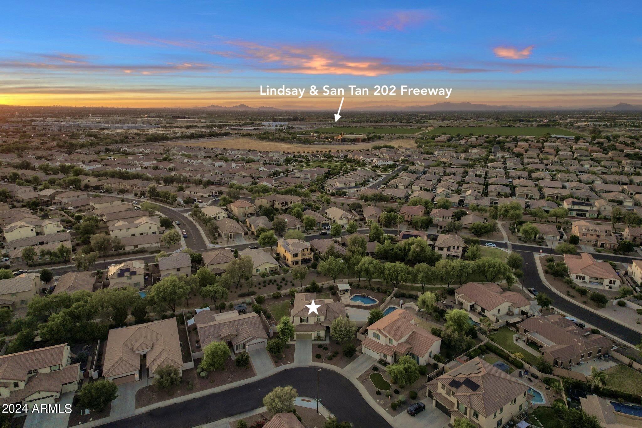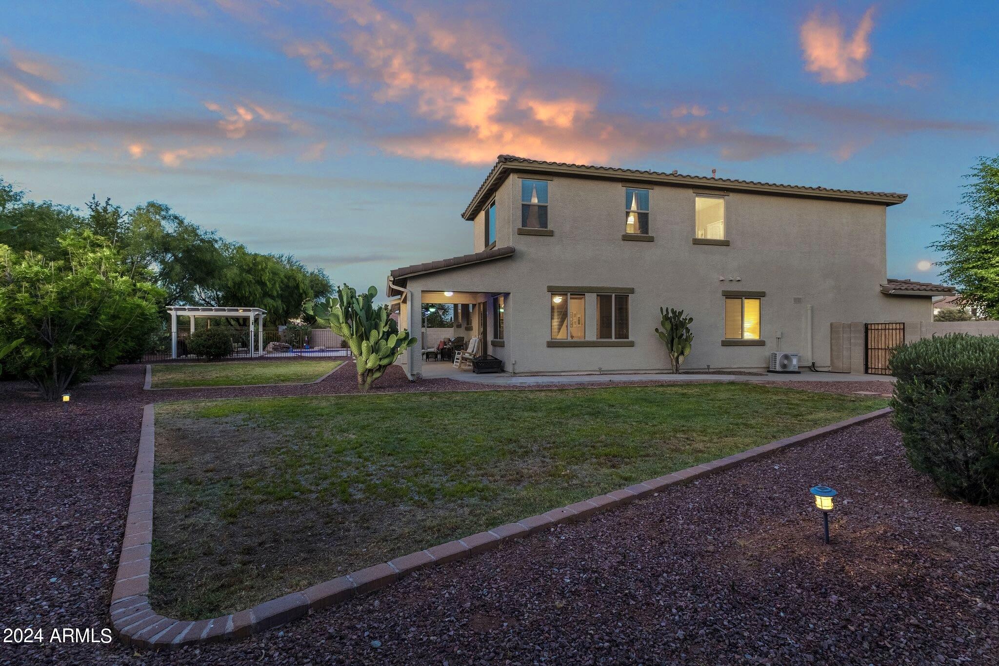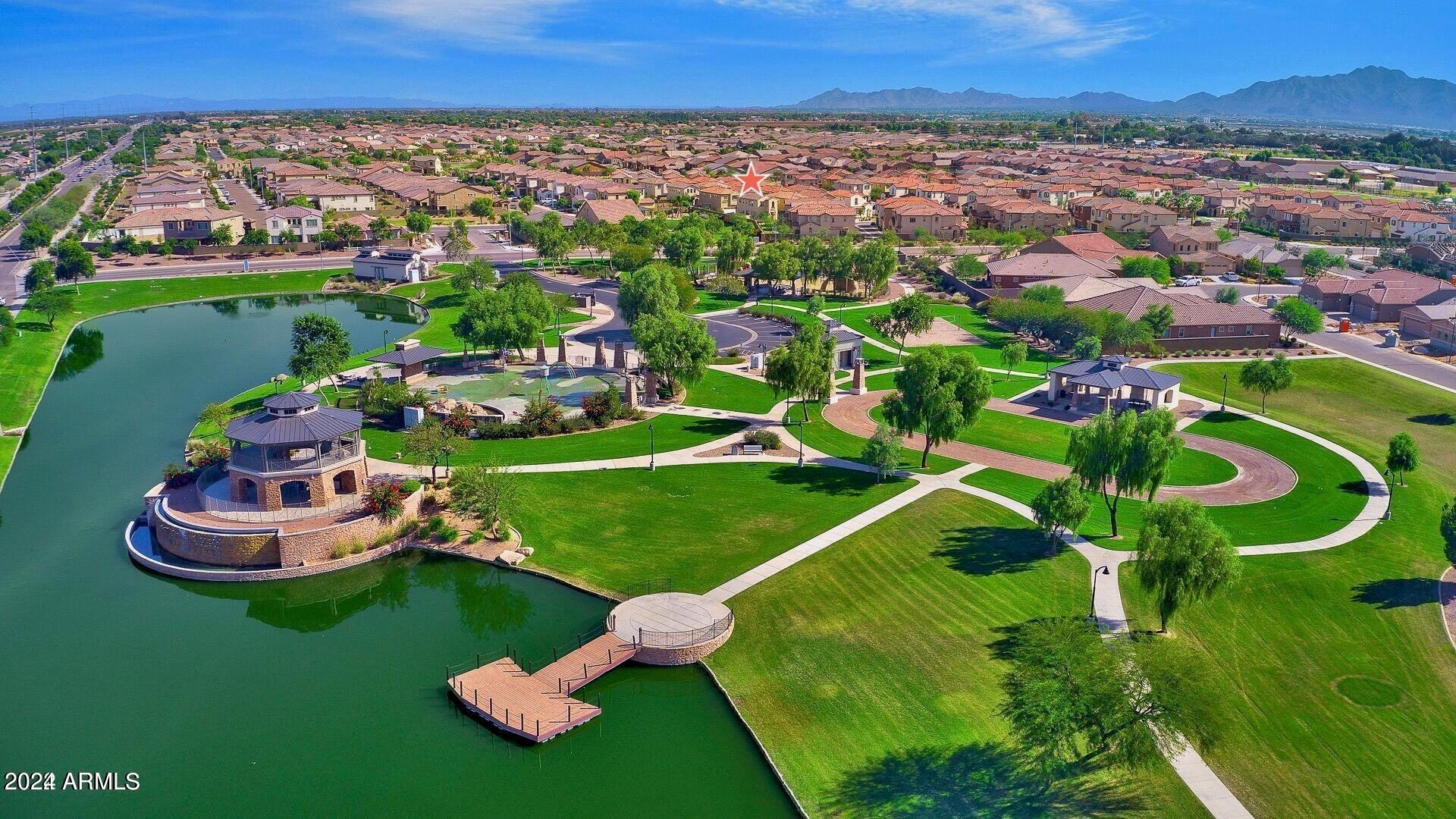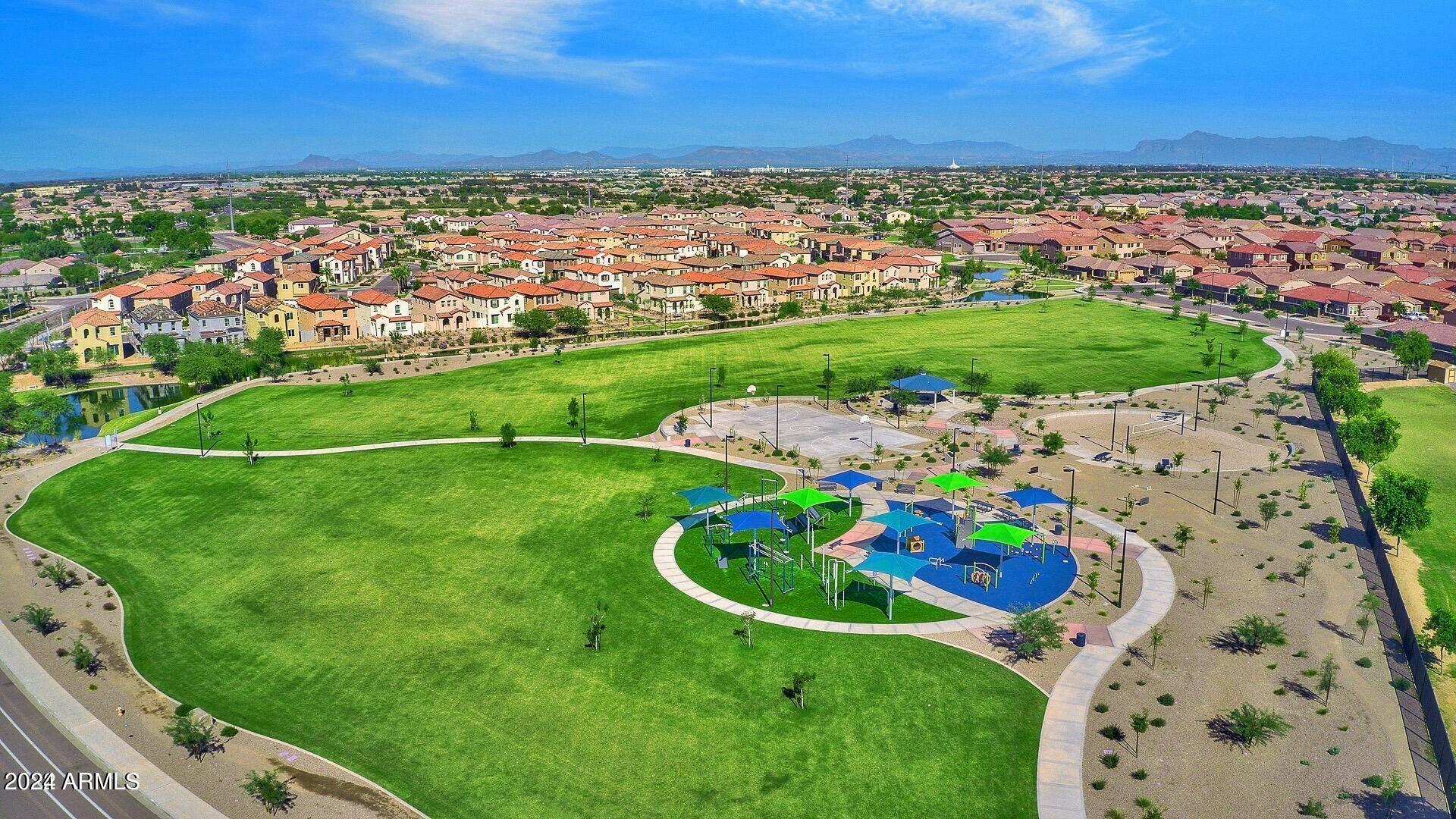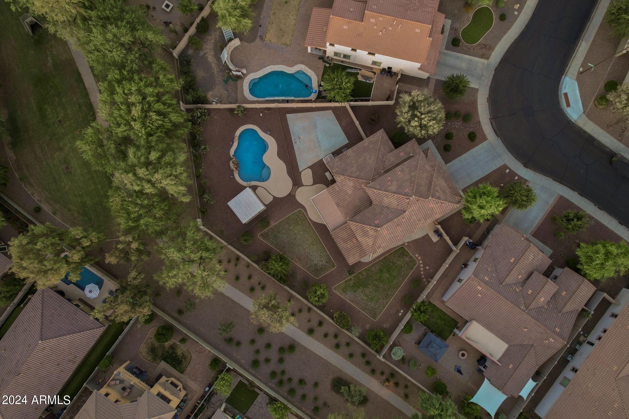 Rare Opportunity to Live in South Gilbert's Destination Master Plan Community of Layton Lakes! This new market offering portrays picture perfect living in every way. Imagine Living in this Lovely Ranch Inspired Family Home Displaying Craftsmanship, Designer Home Interior with Luxury Finishes & Countless Upgrades, Today's Open Floor Plan w/ expansive Home Spaces & Generous Owner's suite w/Spa-Style Bath. Fully Landscaped Premium Interior Lot over 1/3 acre that borders a Beautiful Greenbelt. Enjoy the summer days & nights in your outdoor escape featuring Mature Arcadian Green Landscape w/Flowering Plants & Trees, Sparkling PebbleTec Swimming Pool, Sports Court, Large Grassy Play Areas & expanded patio space w/ Pergola perfect for outdoor furniture & fire pit. THIS IS THE ONE! For more than a decade, Layton Lakes has been the destination community known for its picturesque scenery and neighborhood charm. It's warm and inviting, full of friendly neighbors, engaging lifestyle, and exceptional educational opportunities. Featuring several tree-lined parks, playgrounds, tennis, basketball and volleyball courts, soccer and baseball fields, lakes, streams, waterfalls, and splash pad all surrounded by scenic water lined walking trails. Nestled between both the thriving City of Chandler & Town of Gilbert, residents take advantage of the countless nearby amenities including the 101 & San Tan 202 freeways, shopping, dining, entertainment, airports, hospitals, booming business corridors, and new Southeast Valley Developments.