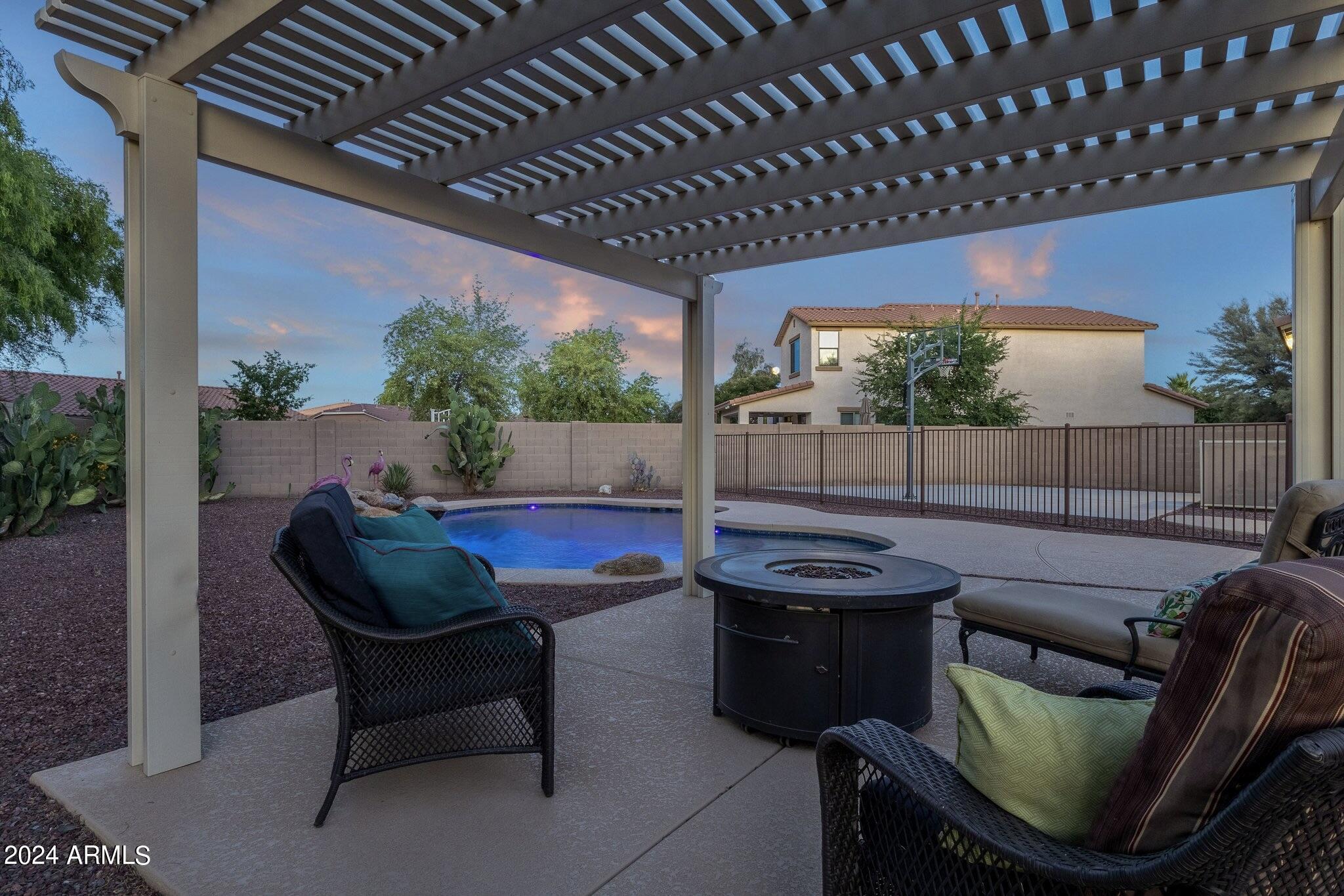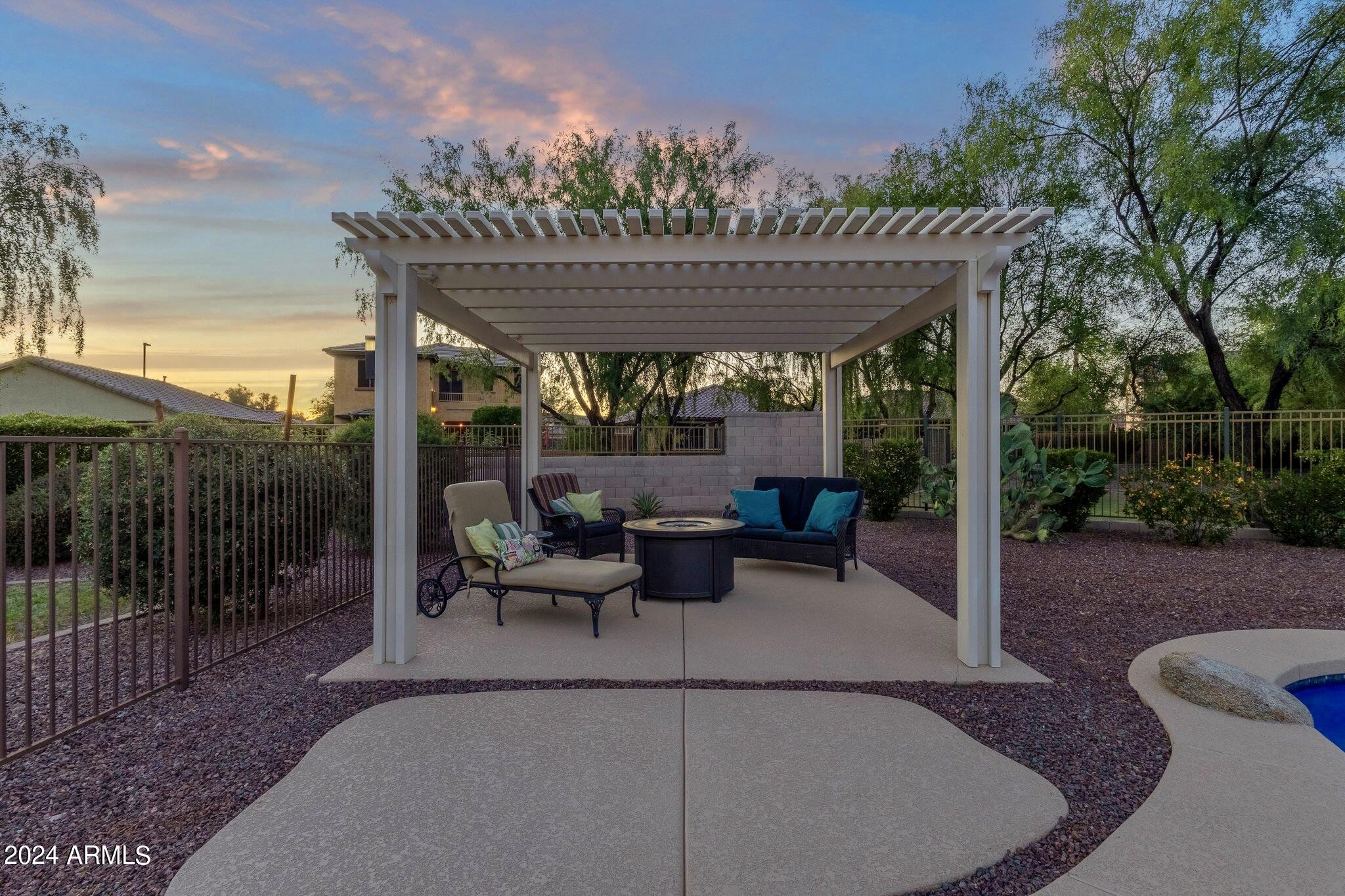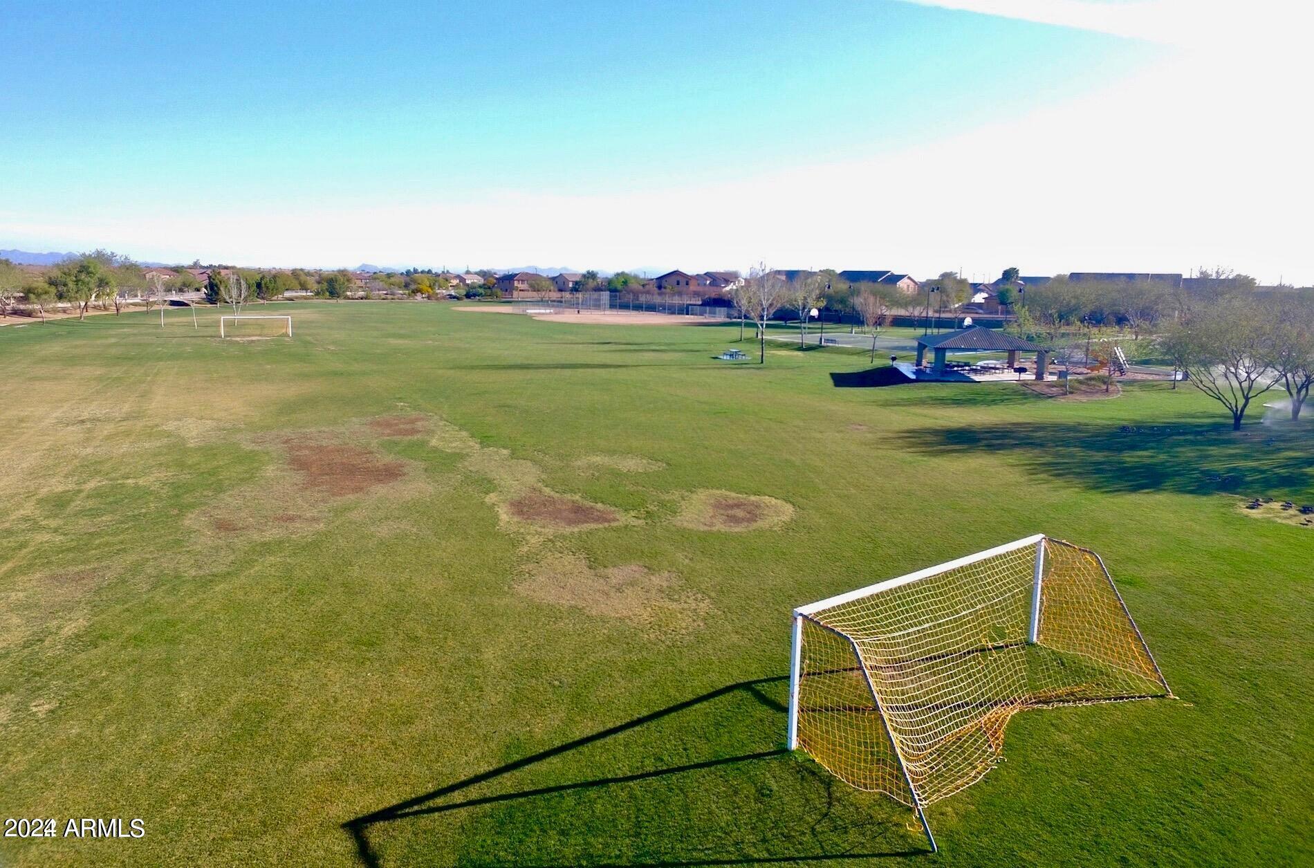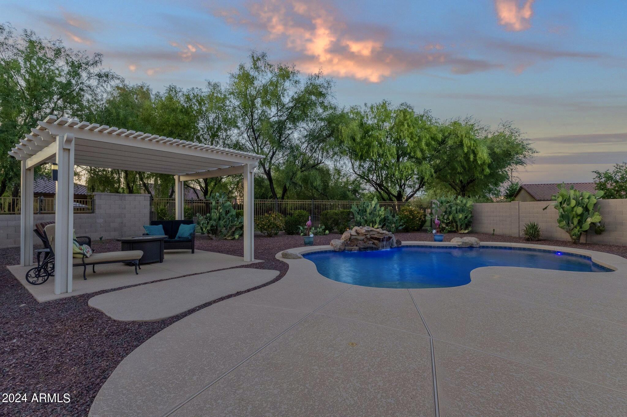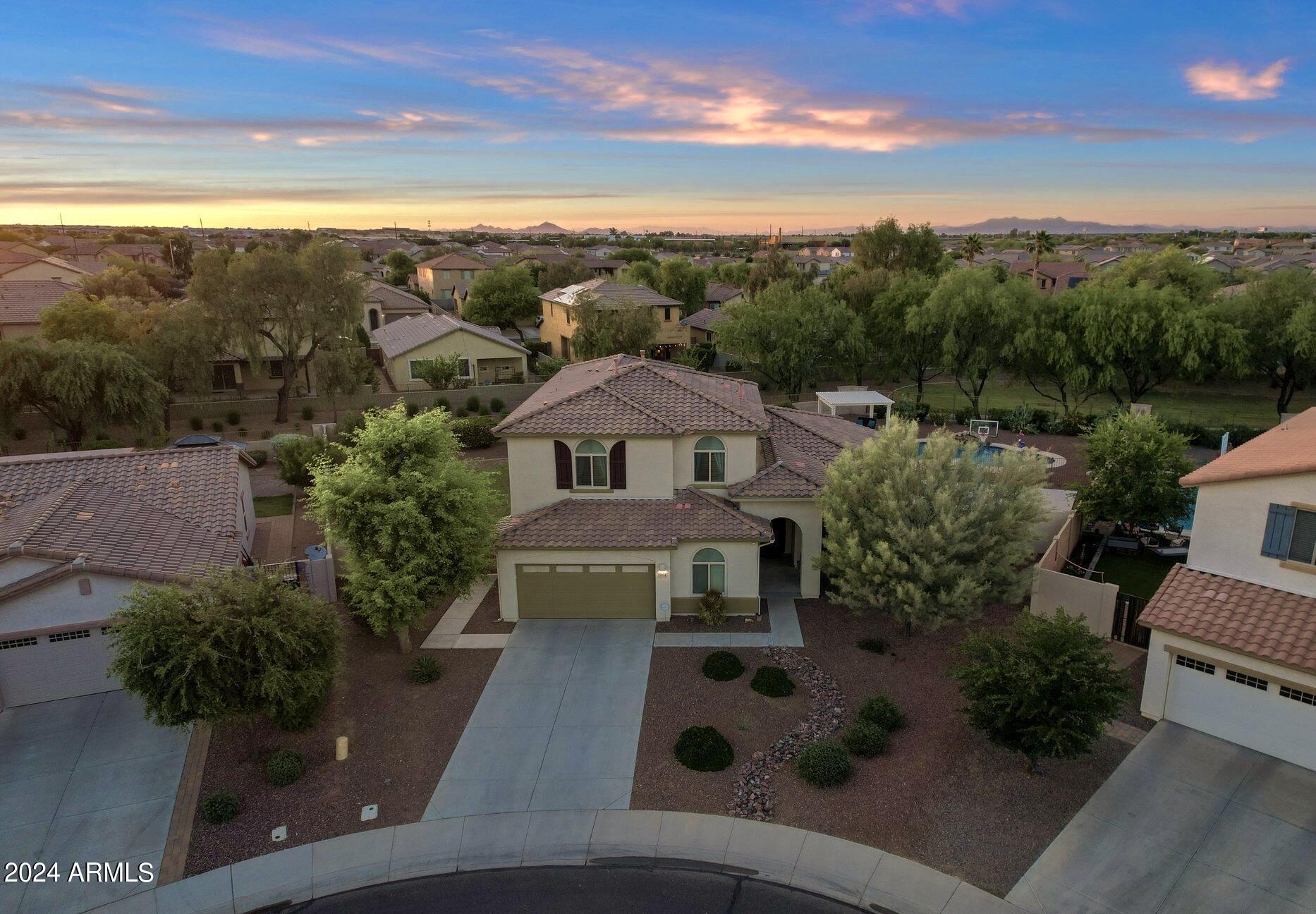 Rare Opportunity to Live in South Gilbert's Destination Master Plan Community of Layton Lakes! This new market offering portrays picture perfect living in every way. Imagine Living in this Lovely Ranch Inspired Family Home Displaying Craftsmanship, Designer Home Interior with Luxury Finishes & Countless Upgrades, Today's Open Floor Plan w/ expansive Home Spaces & Generous Owner's suite w/Spa-Style Bath. Fully Landscaped Premium Interior Lot over 1/3 acre that borders a Beautiful Greenbelt. Enjoy the summer days & nights in your outdoor escape featuring Mature Arcadian Green Landscape w/Flowering Plants & Trees, Sparkling PebbleTec Swimming Pool, Sports Court, Large Grassy Play Areas & expanded patio space w/ Pergola perfect for outdoor furniture & fire pit. THIS IS THE ONE! For more than a decade, Layton Lakes has been the destination community known for its picturesque scenery and neighborhood charm. It's warm and inviting, full of friendly neighbors, engaging lifestyle, and exceptional educational opportunities. Featuring several tree-lined parks, playgrounds, tennis, basketball and volleyball courts, soccer and baseball fields, lakes, streams, waterfalls, and splash pad all surrounded by scenic water lined walking trails. Nestled between both the thriving City of Chandler & Town of Gilbert, residents take advantage of the countless nearby amenities including the 101 & San Tan 202 freeways, shopping, dining, entertainment, airports, hospitals, booming business corridors, and new Southeast Valley Developments.