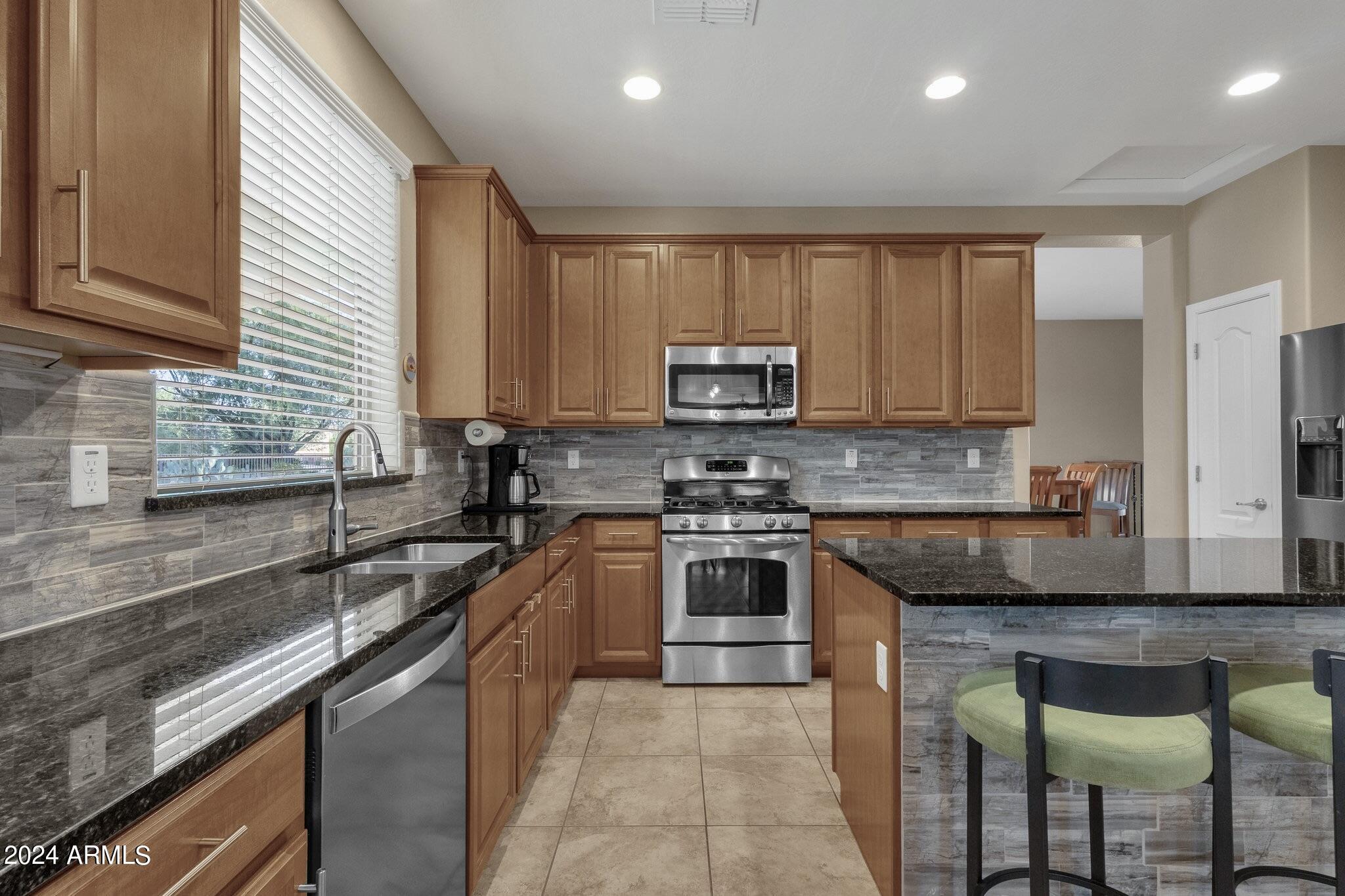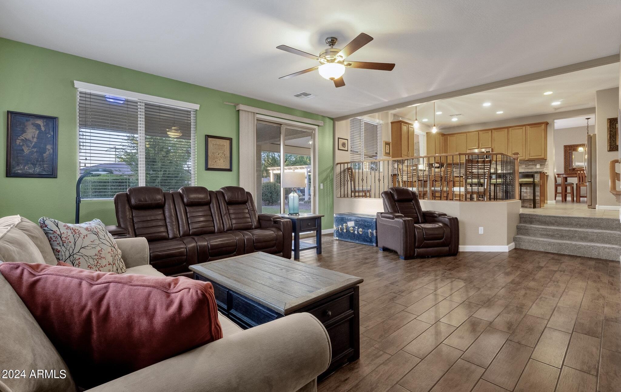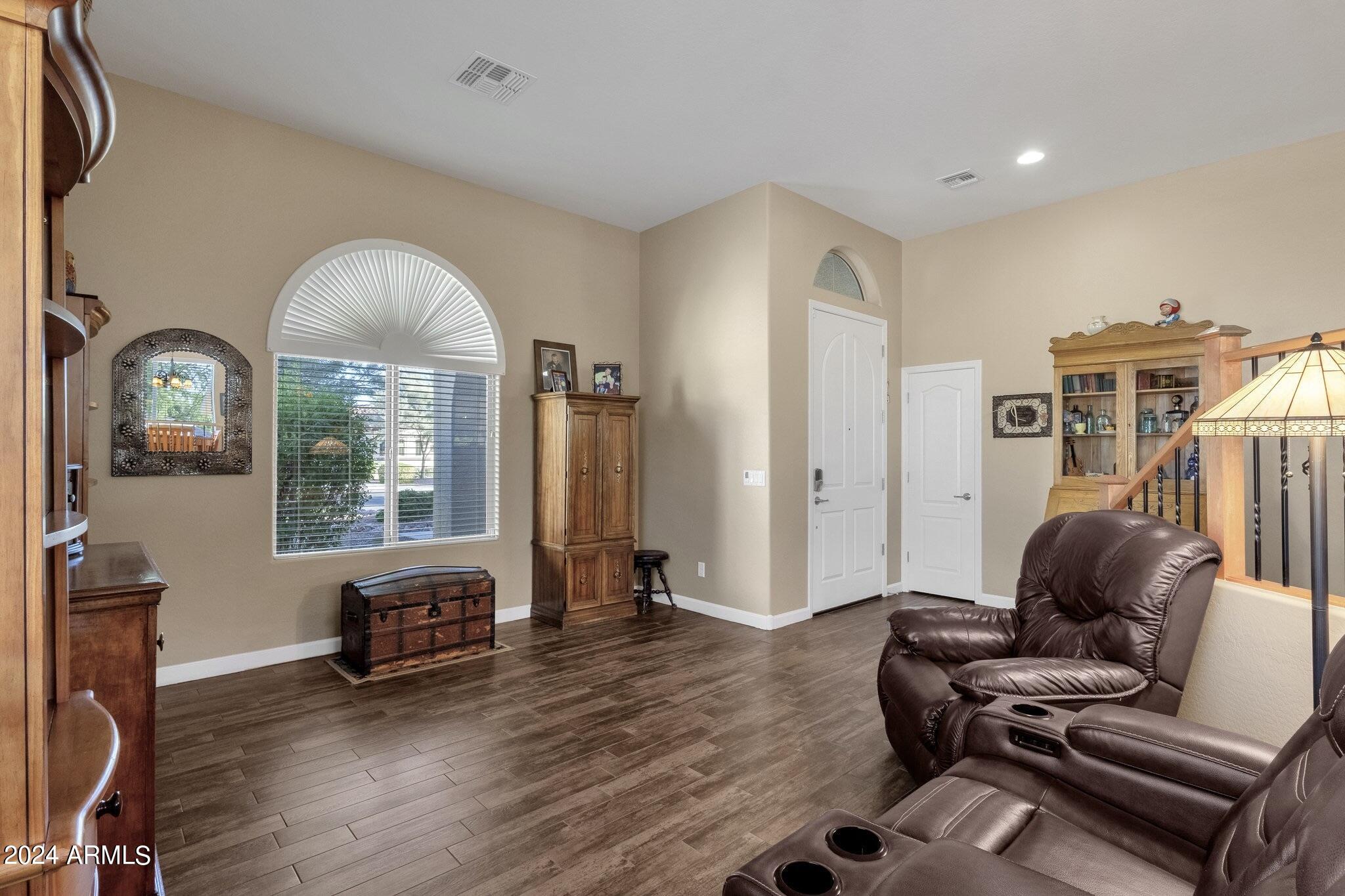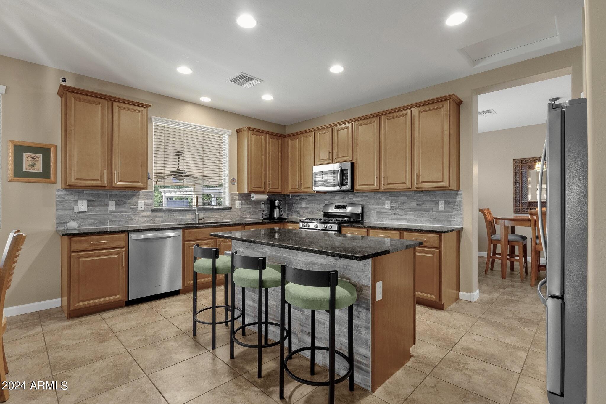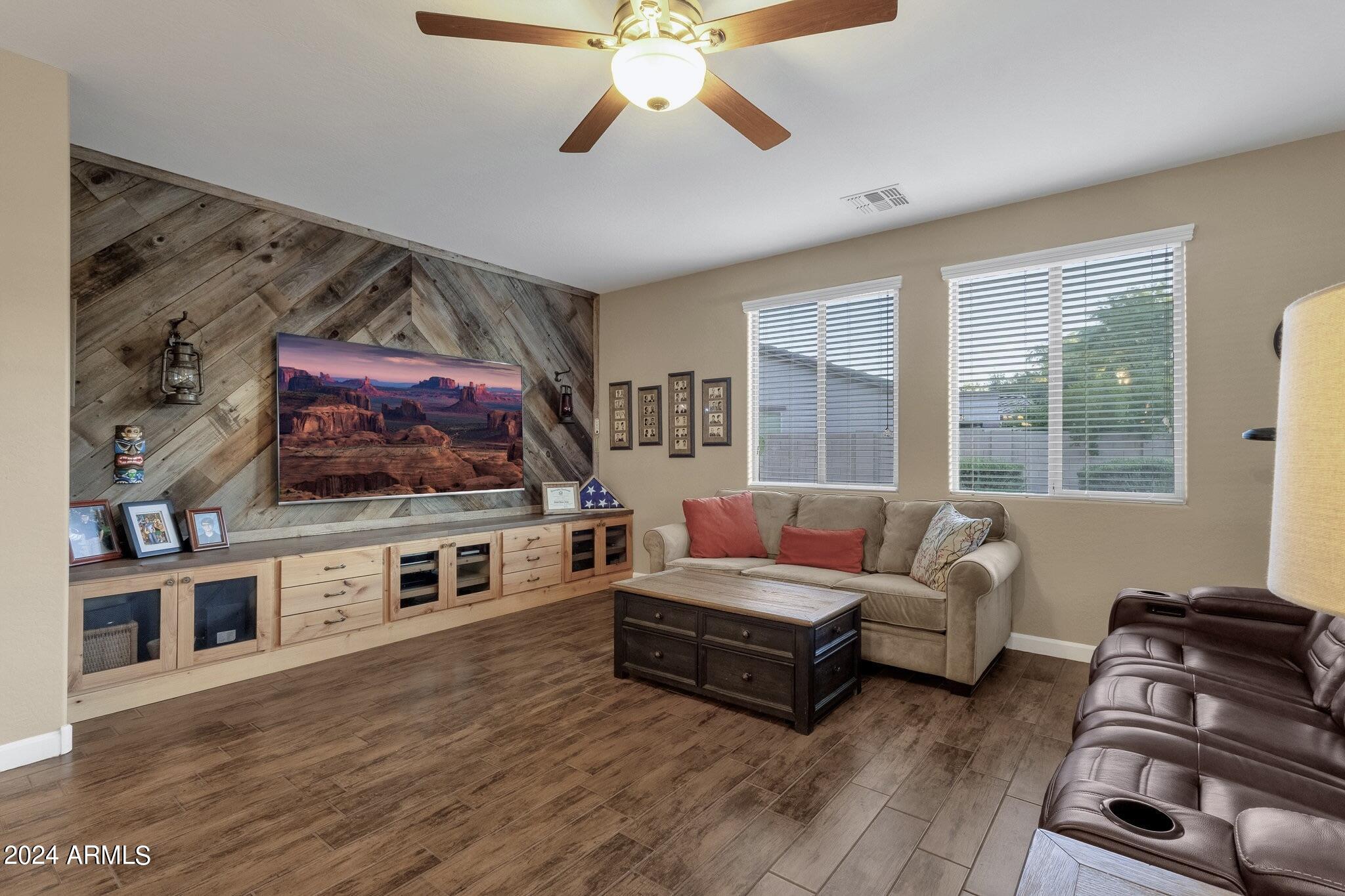Rare Opportunity to Live in South Gilbert's Destination Master Plan Community of Layton Lakes! This new market offering portrays picture perfect living in every way. Imagine Living in this Lovely Ranch Inspired Family Home Displaying Craftsmanship, Designer Home Interior with Luxury Finishes & Countless Upgrades, Today's Open Floor Plan w/ expansive Home Spaces & Generous Owner's suite w/Spa-Style Bath. Fully Landscaped Premium Interior Lot over 1/3 acre that borders a Beautiful Greenbelt. Enjoy the summer days & nights in your outdoor escape featuring Mature Arcadian Green Landscape w/Flowering Plants & Trees, Sparkling PebbleTec Swimming Pool, Sports Court, Large Grassy Play Areas & expanded patio space w/ Pergola perfect for outdoor furniture & fire pit. THIS IS THE ONE! For more than a decade, Layton Lakes has been the destination community known for its picturesque scenery and neighborhood charm. It's warm and inviting, full of friendly neighbors, engaging lifestyle, and exceptional educational opportunities. Featuring several tree-lined parks, playgrounds, tennis, basketball and volleyball courts, soccer and baseball fields, lakes, streams, waterfalls, and splash pad all surrounded by scenic water lined walking trails. Nestled between both the thriving City of Chandler & Town of Gilbert, residents take advantage of the countless nearby amenities including the 101 & San Tan 202 freeways, shopping, dining, entertainment, airports, hospitals, booming business corridors, and new Southeast Valley Developments.