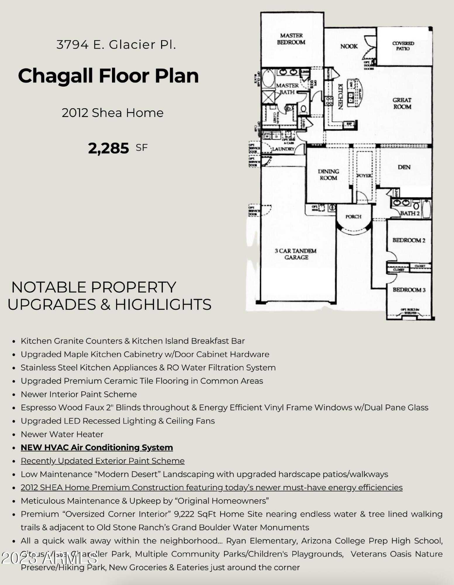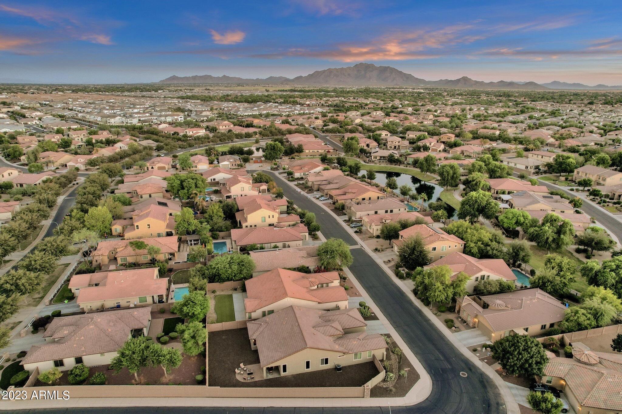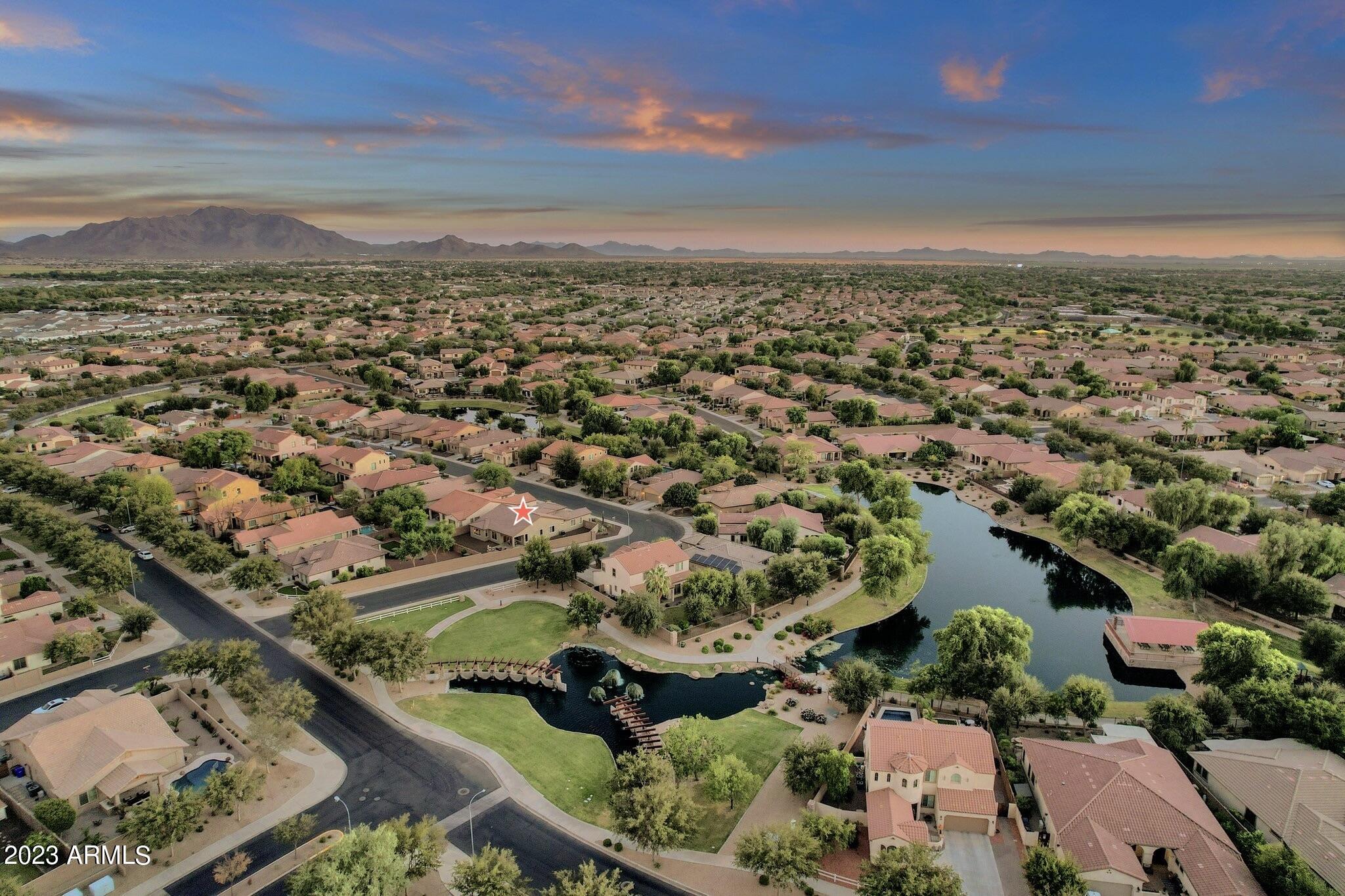 Consider Centralized Destination Living in SOUTH CHANDLER'S PREMIER LAKE community... Old Stone Ranch. This Newer Original Owner 2012 Shea Home is sure to check all your boxes... Prime South Chandler Proximity w/all new must-have attractions surrounding your doorstep, Prized Master Plan ft. Water/Tree lined walking trails w/white picket fences & water features, Scenic San Tan Mtn Views, Excelling School Options, Upgraded ''Modern Desert'' Exterior Elevation & Landscaping, Desirable Chagall Floor plan influencing everyday functionality & featuring an Entertainers Open Great Room/Kitchen Space w/3 beds + optional 4th bedroom/bonus room + oversized flex room, Nicely appointed Kitchen models upgraded Cabinetry/Hardware, Granite Counters, Kitchen Island w/Breakfast Bar & SS Kitchen Appliances, 3-car Tandem Garage w/Custom Cabinetry, Built with Today's Must-Have energy efficiencies, NEW Exterior Paint Scheme, NEW HVAC System & Water Heater, Premium Private "Oversized Corner Interior" 9,222 SqFt Home Site nearing endless water & tree lined walking trails & adjacent to Old Stone Ranch's Grand Boulder Water Monuments, Current back/side yards are perfect blank slates to complete the outdoor space you desire... you can't replicate this size lot with new options! Guaranteed Open Air & Mountain Views with no multi-level homes nearing. Ample distance between neighboring rooflines and No loud Train lines, busy boulevards or power lines, only the sound of waterfalls! Recent High Comparable "Chagall" Model sold for $815K, establishing a significant value ceiling to create your own home canvas as you please!