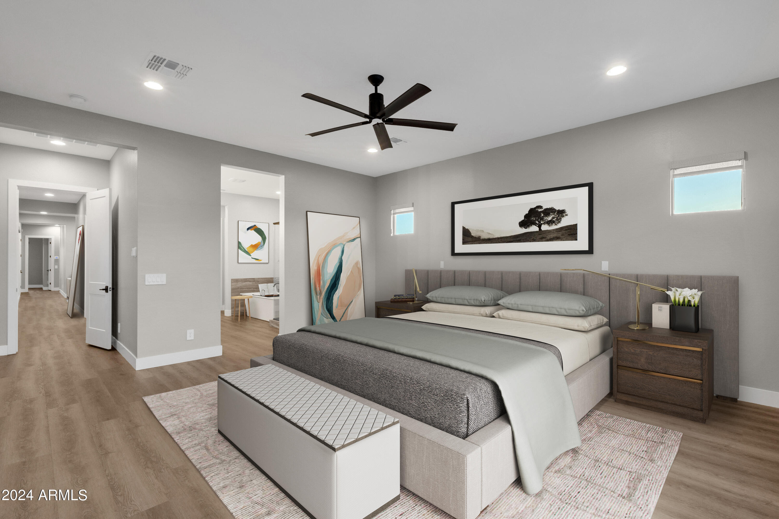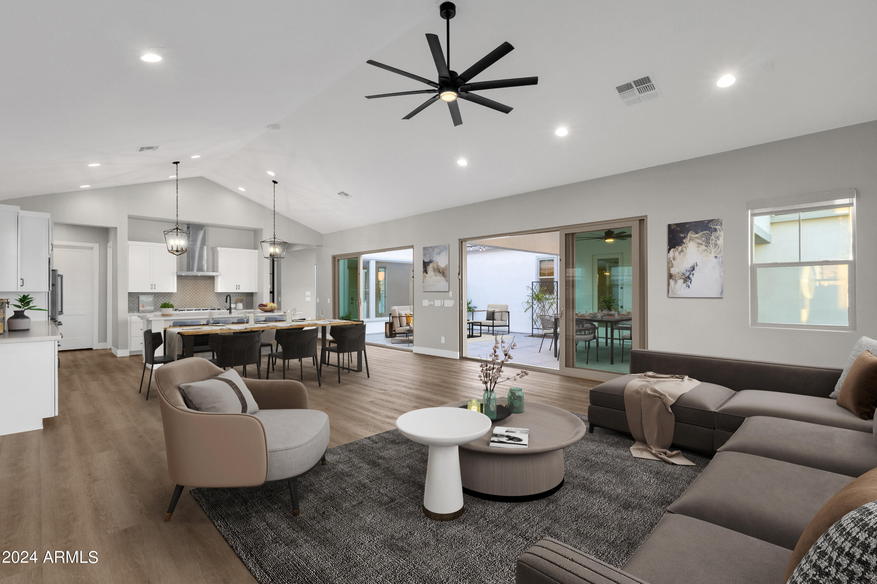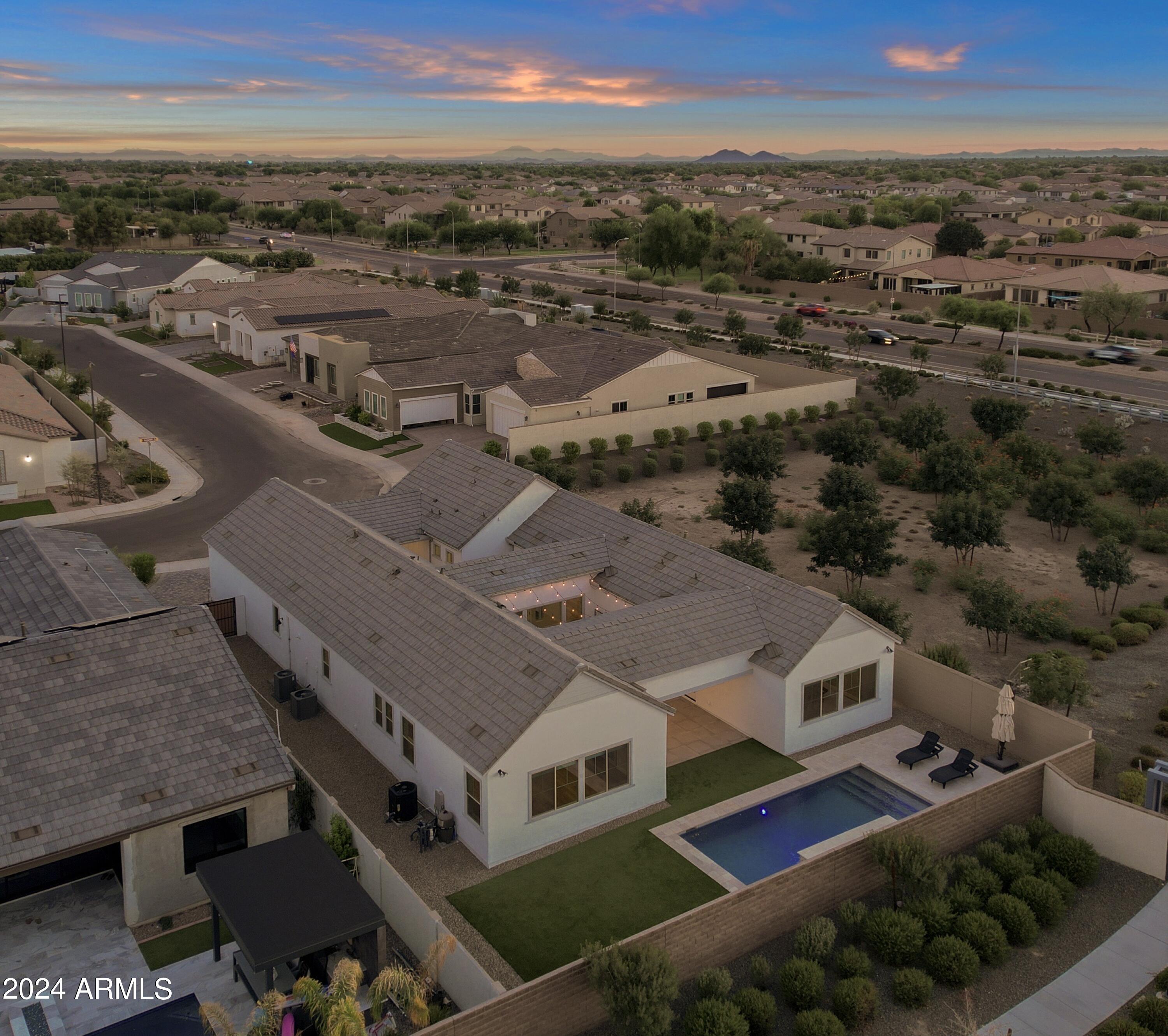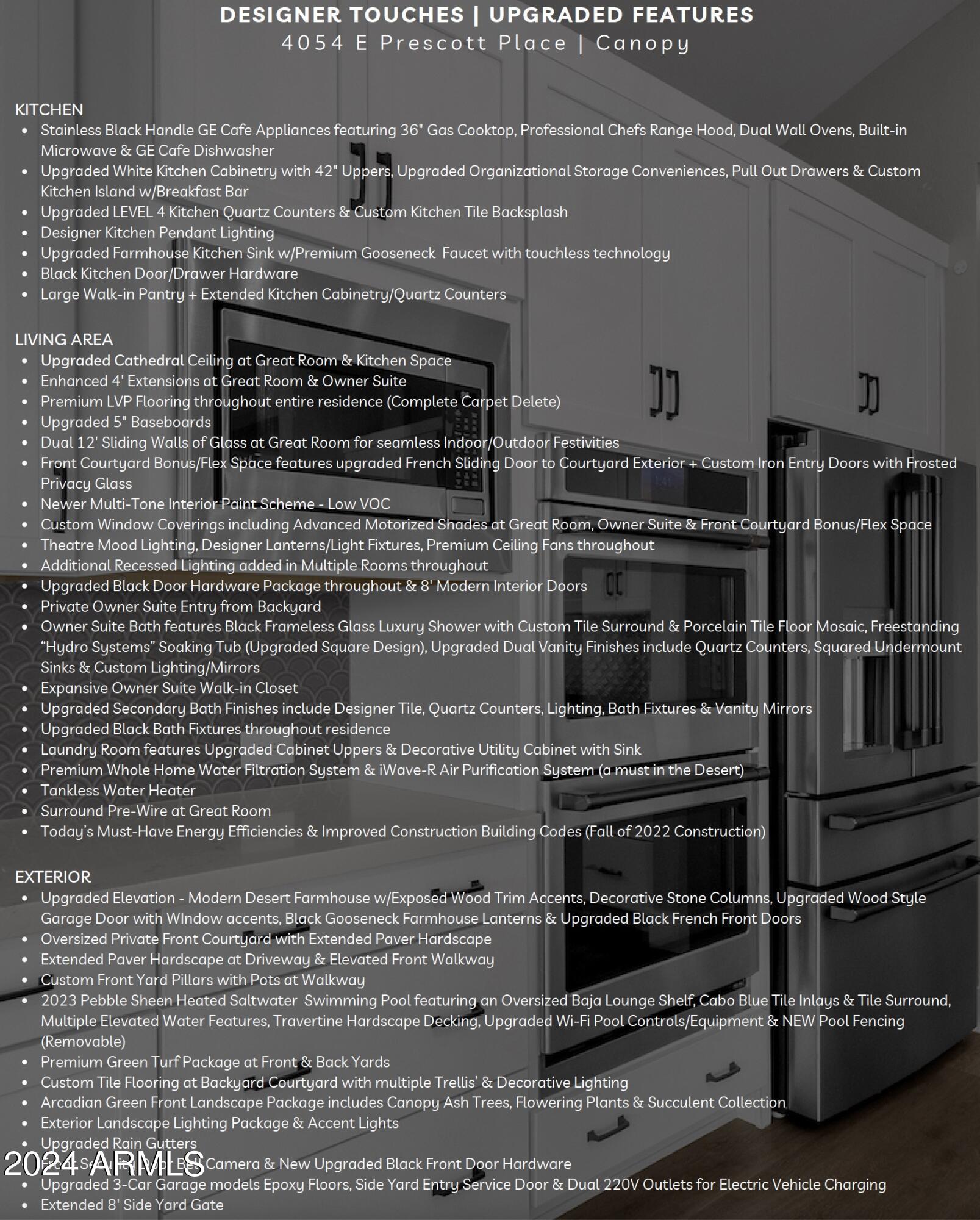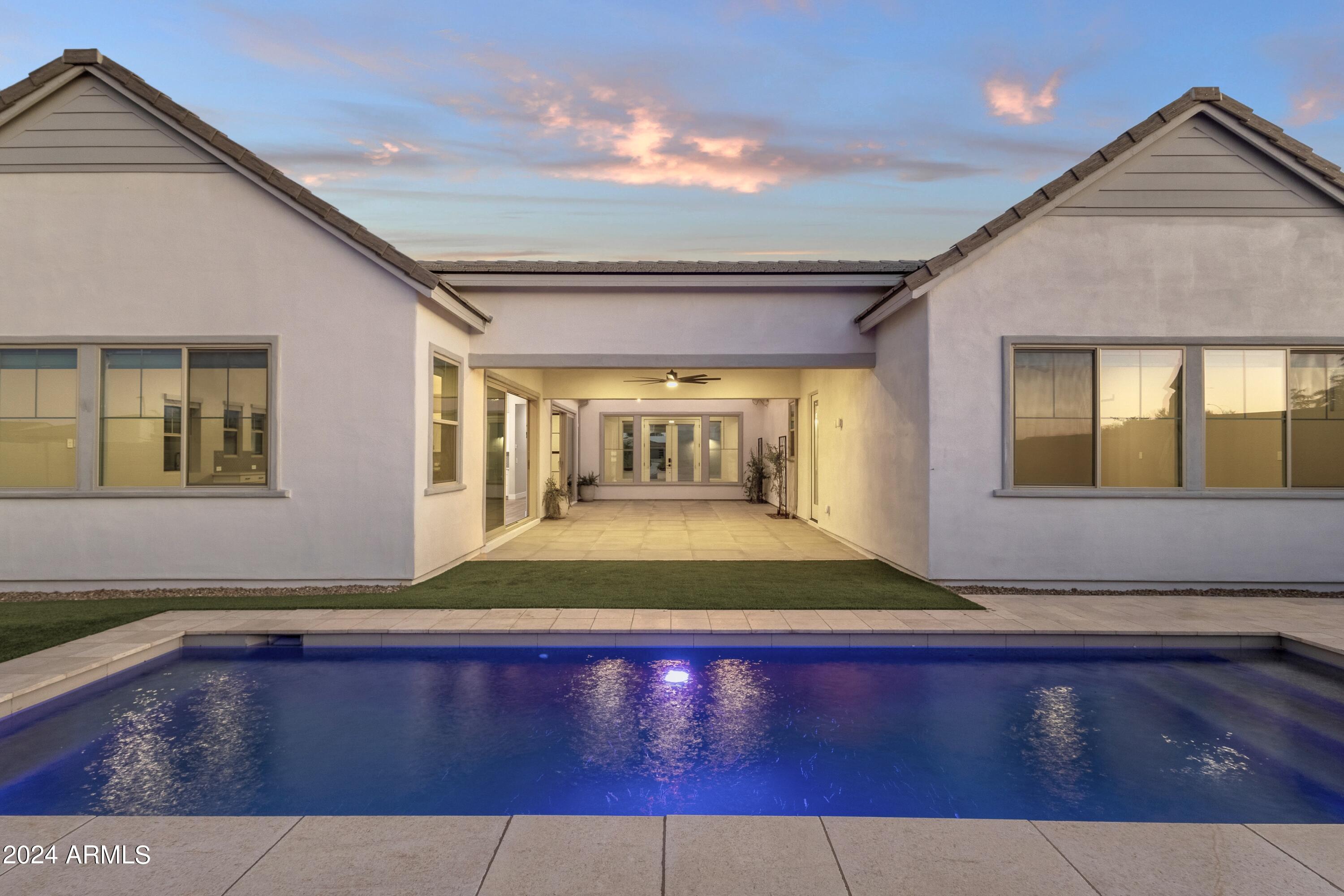 FARMHOUSE MEETS DESERT LUXURY IN SOUTH CHANDLER'S EXCLUSIVE GATED MASTER PLAN ''CANOPY''. Pursue an Inspiring SOUTH CHANDLER LIFESTYLE in this stunning magazine model residence... offering the REFINED DESIGNER LIVING you've been looking for. CONSIDER IT ALL... PRIZED SOUTH CHANDLER PROXIMITY at LINDSAY/OCOTILLO RD CORRIDOR with attractions/amenities surrounding your doorstep from all directions, Distinctive Tri-Pointe Homes Farmhouse Architecture & Late 2022 Craftsmanship with Today's Must-Have Energy Efficiencies, Private Portico Courtyard Entry, NEW MOVE-IN READY LUXURY INTERIOR SHOWCASING CUSTOM OWNER UPGRADES | FEATURES | FINISHES EVERYWHERE... including NEW HIGH END LVP flooring throughout (complete carpet delete), OPEN CATHEDRAL CEILING GREAT ROOM ''CITRUS'' Floor Plan influencing everyday functionality & featuring a Professional Chefs Gourmet Kitchen w/built-in GE Cafe Appliances, MIRRORING 12' STACKING GLASS DOORS & Wall Glass Windows influence extraordinary Indoor/Outdoor themed Views & Festivities, Uniquely Designed Central/Backyard Portico Courtyard Space with Porcelain Tile & Decorative Accents, Multiple Bonus Rooms include (Open Game Room Space near secondary bedrooms & Additional flex/den space featuring Upgraded Glass Slider with Front Courtyard Entry/Views & Custom 8' Iron French Doors w/Frosted Privacy Glass, Private Owner Suite Retreat w/Spa-Like Bath Amenities including a "Hydro System" Freestanding Soaking Tub, Transition outside and soak up Your Newer Heated Salt Water Luxury Lounge Pool with Elevated Water Features, Baja Shelf, Travertine Hardscape & Green Turf Scape. Backyard has room to further design all your best OUTDOOR USES & FAVORED Backyard Amenities. 10,108 Sqft Corner Home Site modeling ideal North Backyard Exposure. EXPERIENCE IN PERSON. MAKE THIS LIMITED HOME OFFERING YOUR PRIZED SOUTH CHANDLER SANCTUARY!