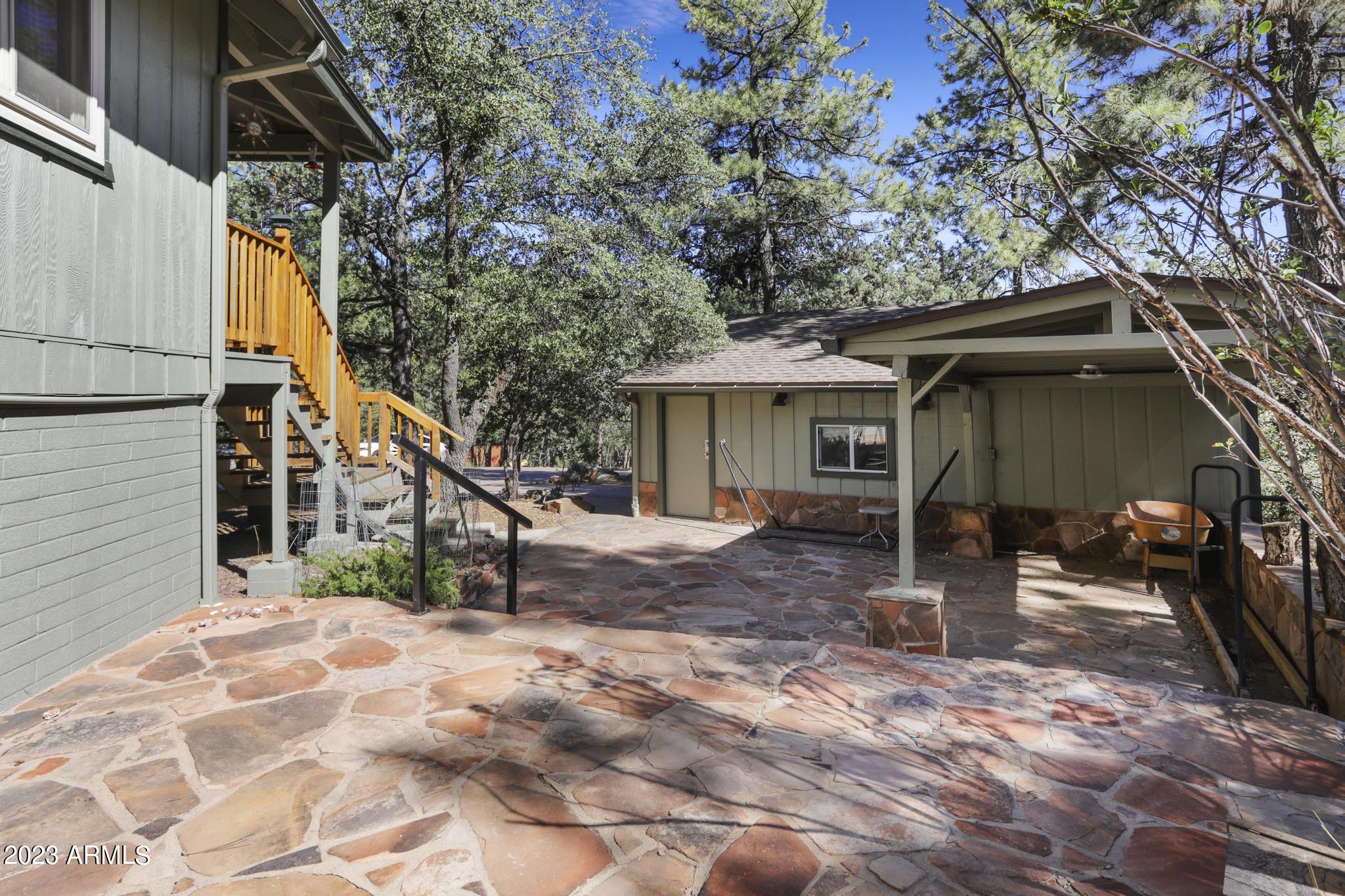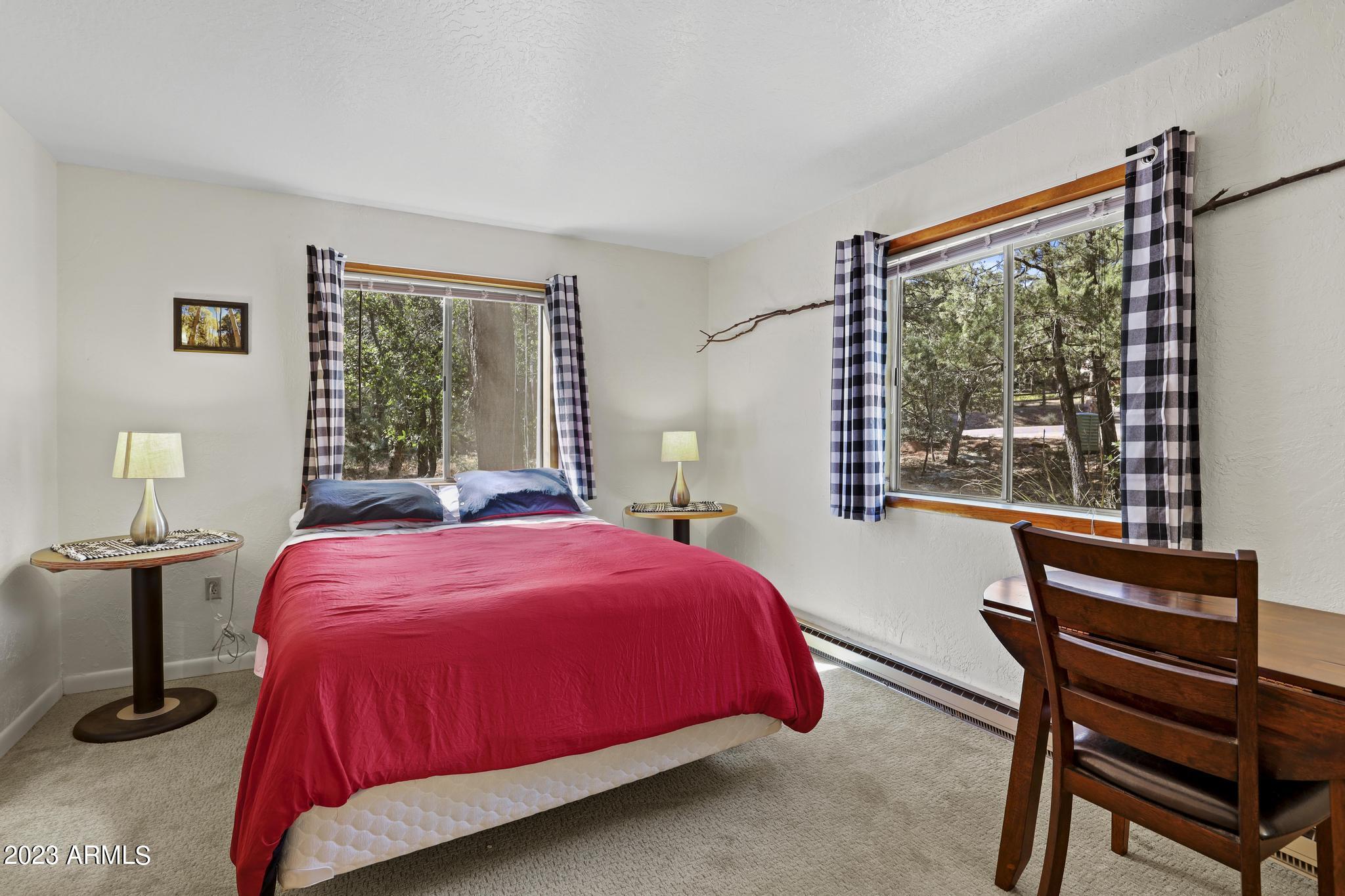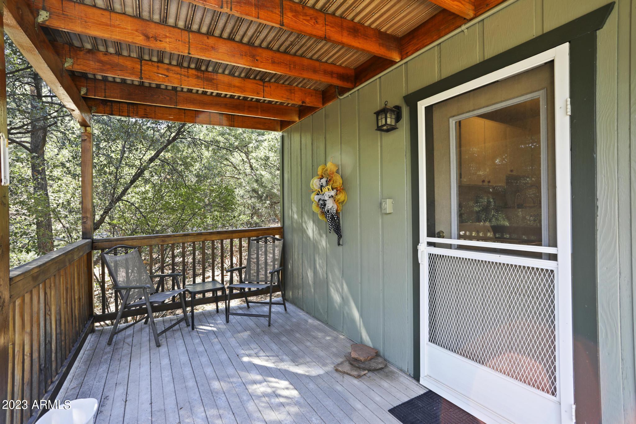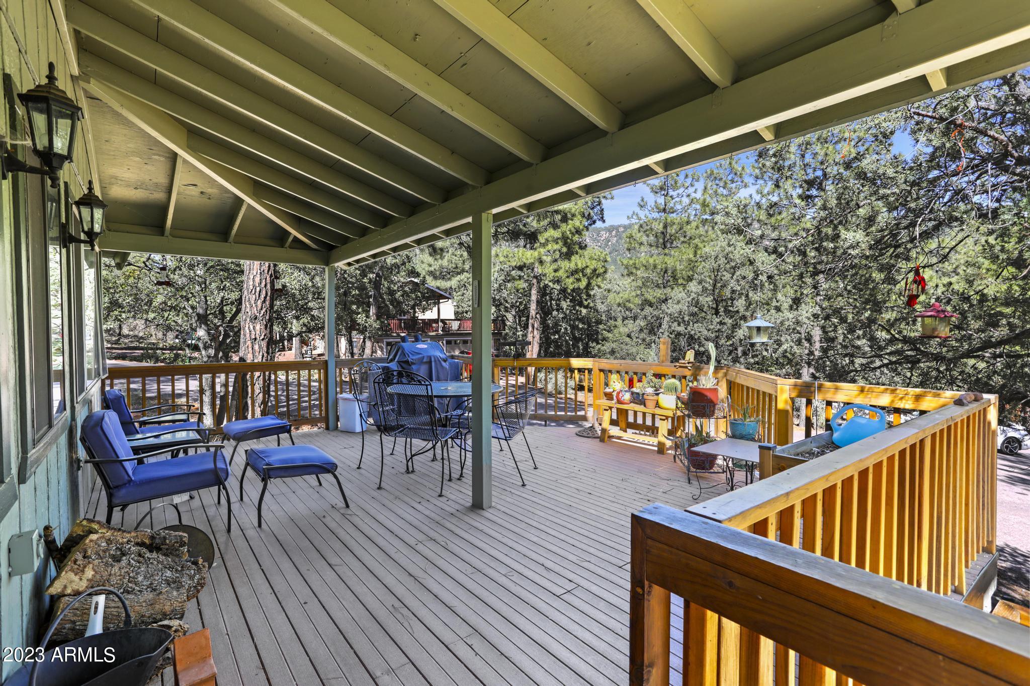 Welcoming A frame cabin with two large decks for enjoying cooler temps and starry nights. Open Floor Plan with soaring wood ceilings in main room which has large windows for views to the Rim and sunrise. Kitchen has breakfast bar, dishwasher, cooktop, walk-in pantry and is open to main spaces. Also on main level: bedroom, full bath and laundry room. Upstairs loft has a bedroom and half bath, outdoor deck and natural light. Spacious Two Car Garage.
