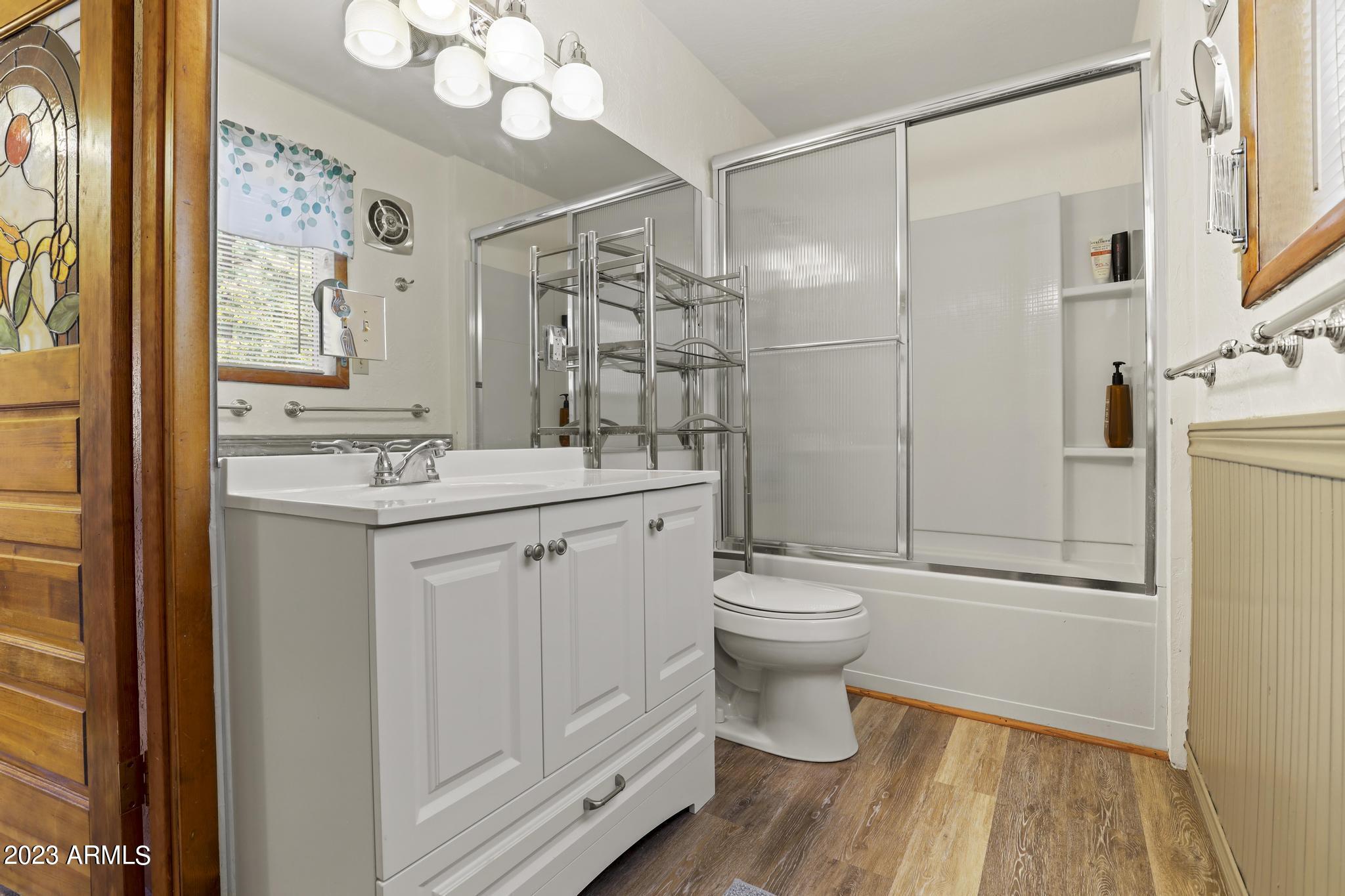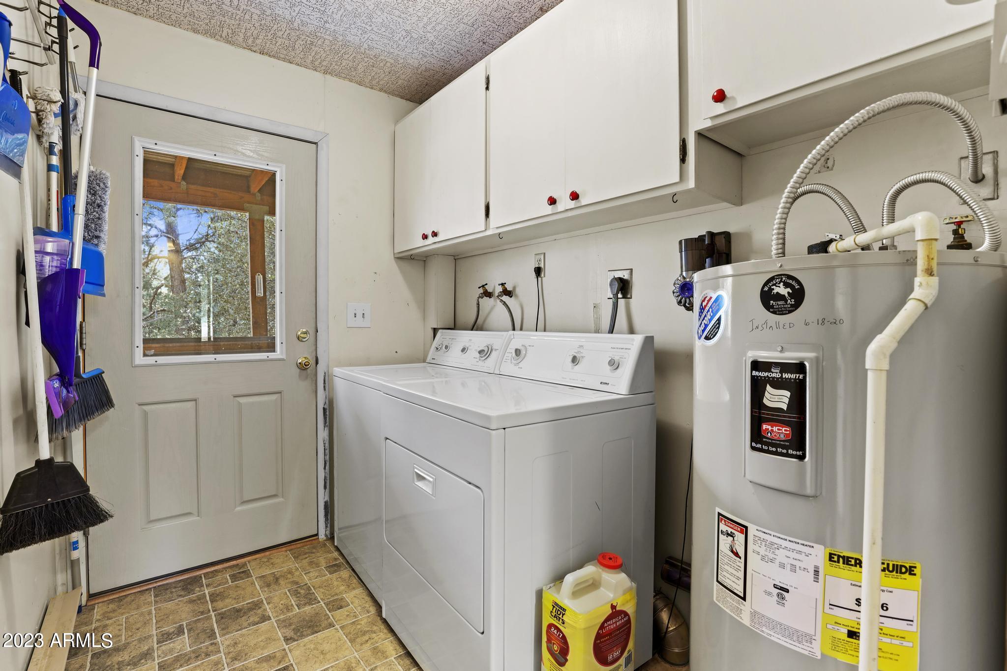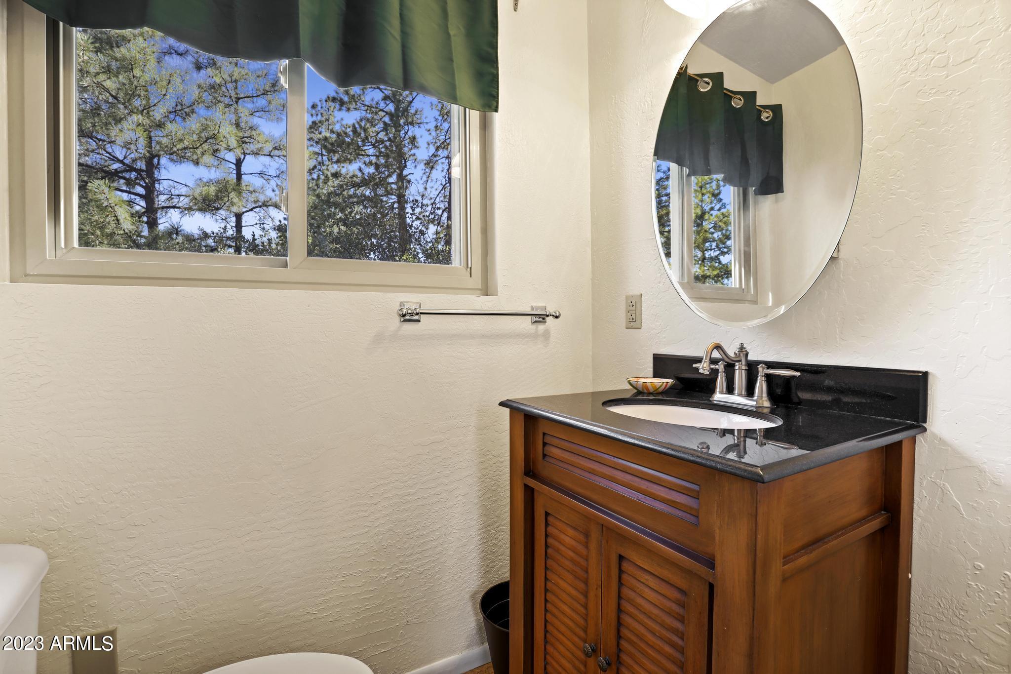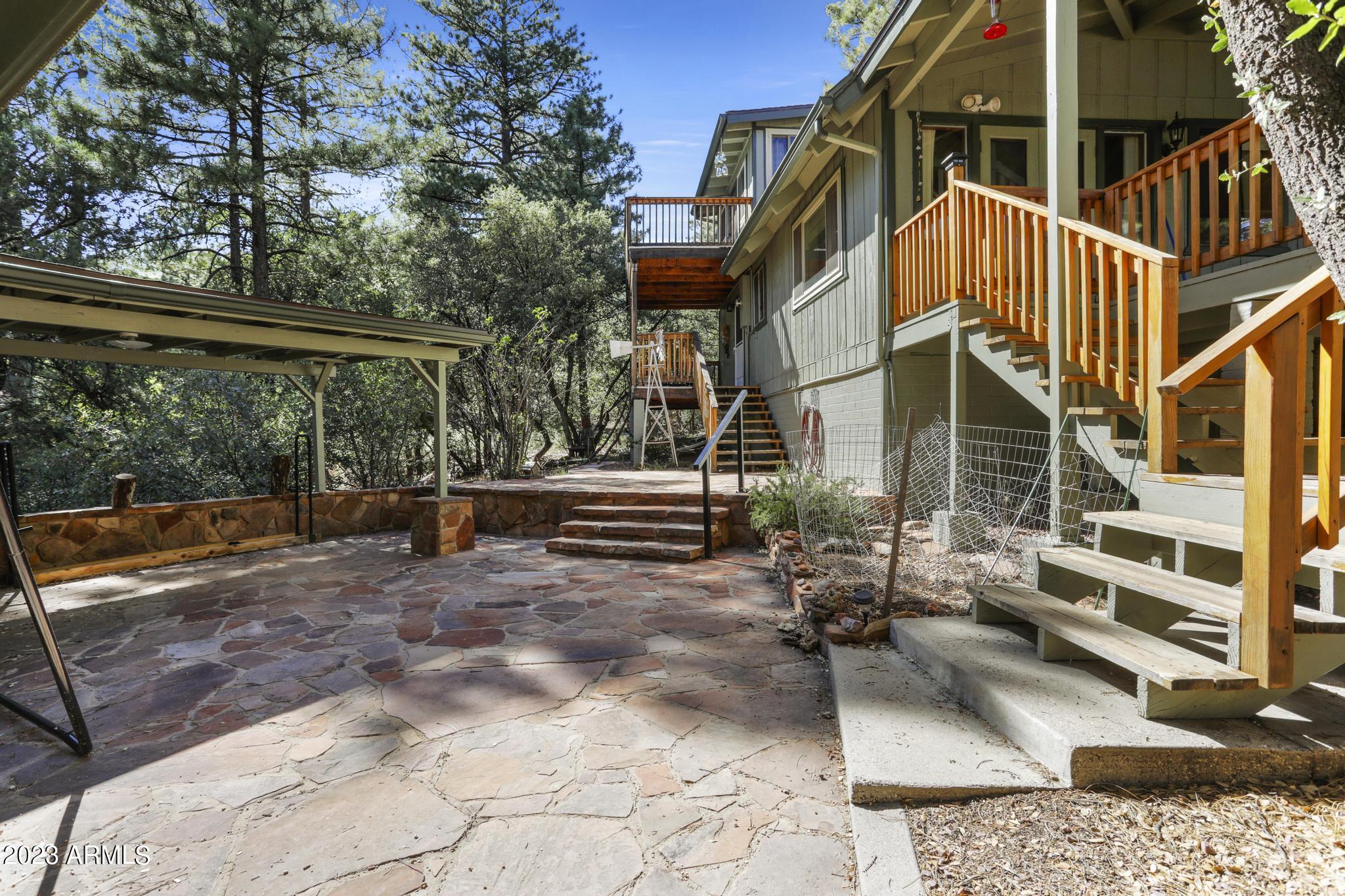 Welcoming A frame cabin with two large decks for enjoying cooler temps and starry nights. Open Floor Plan with soaring wood ceilings in main room which has large windows for views to the Rim and sunrise. Kitchen has breakfast bar, dishwasher, cooktop, walk-in pantry and is open to main spaces. Also on main level: bedroom, full bath and laundry room. Upstairs loft has a bedroom and half bath, outdoor deck and natural light. Spacious Two Car Garage.