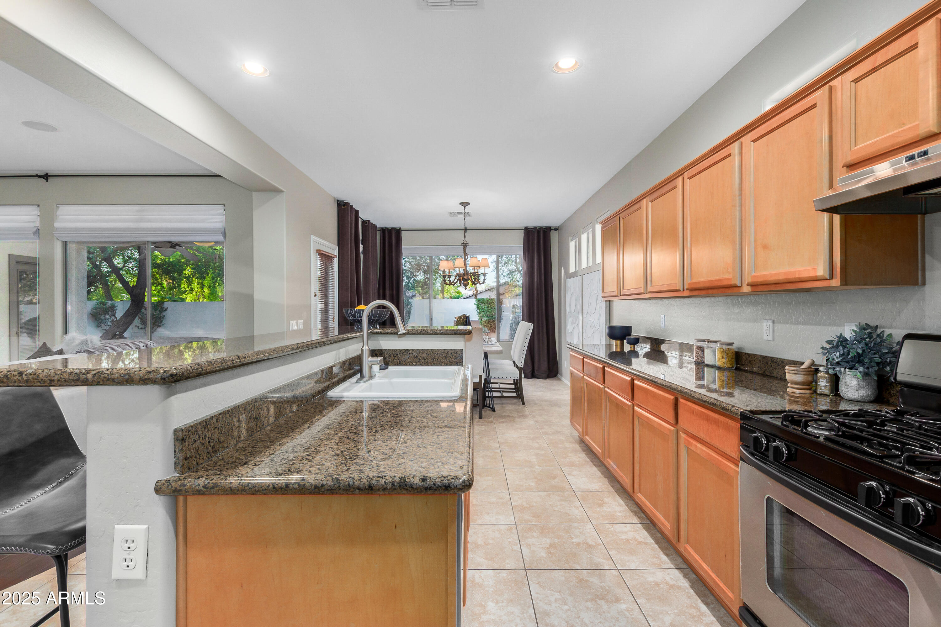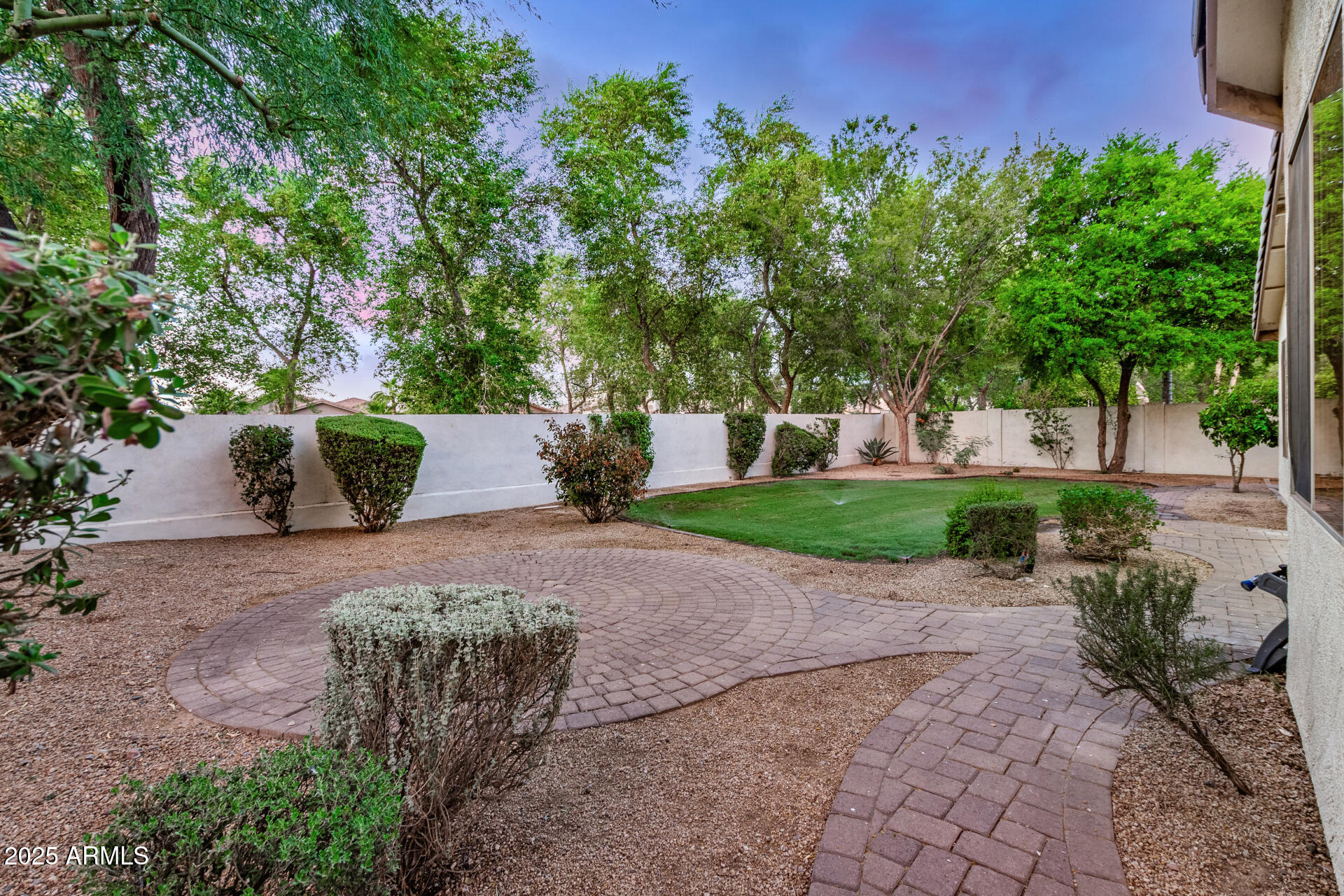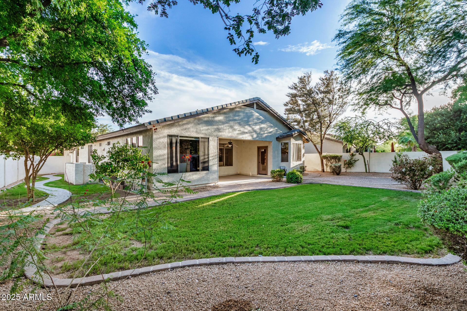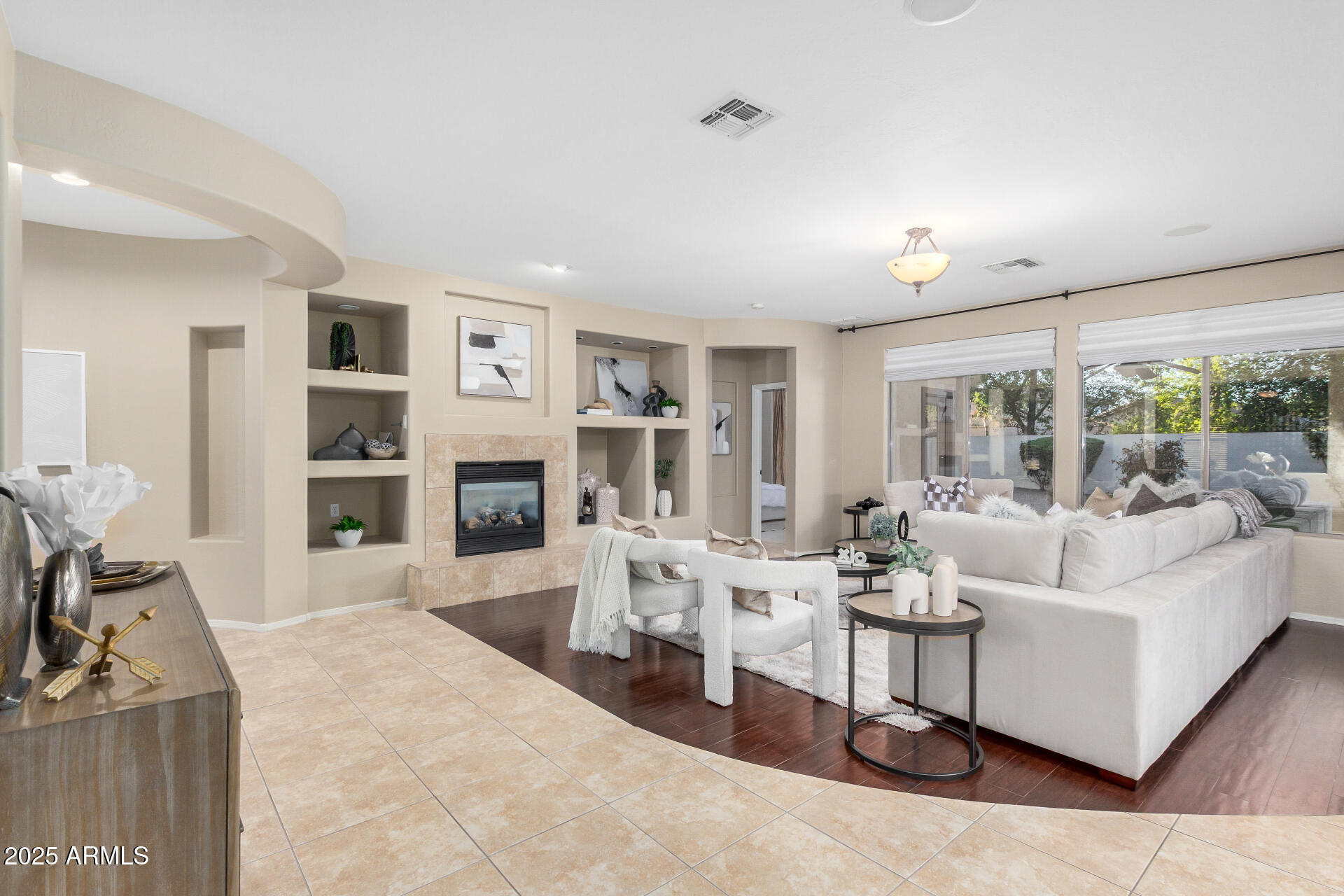 Explore Paseo Crossing and discover a 4-bedroom gem! A 2-car garage welcomes you, while a semi-open den invites cozy lounging. Great room is perfect for entertaining, complete with pre-wired surround sound, a gas fireplace, and stylish wall niches. Enjoy meals in the formal dining area or whip up culinary creations in a kitchen boasting Stainless Steel appliances, abundant cabinetry, a spacious pantry, granite counters, and a center island with a breakfast bar. Main bedroom is a serene retreat with direct backyard access, a private bathroom with dual vanities, a soaking tub, and a walk-in closet. Outside, the covered patio and generous backyard with plenty of space to design a pool oasis with sizzling BBQ. This gem isn't just a place to live, it's where memories are made! Welcome home!