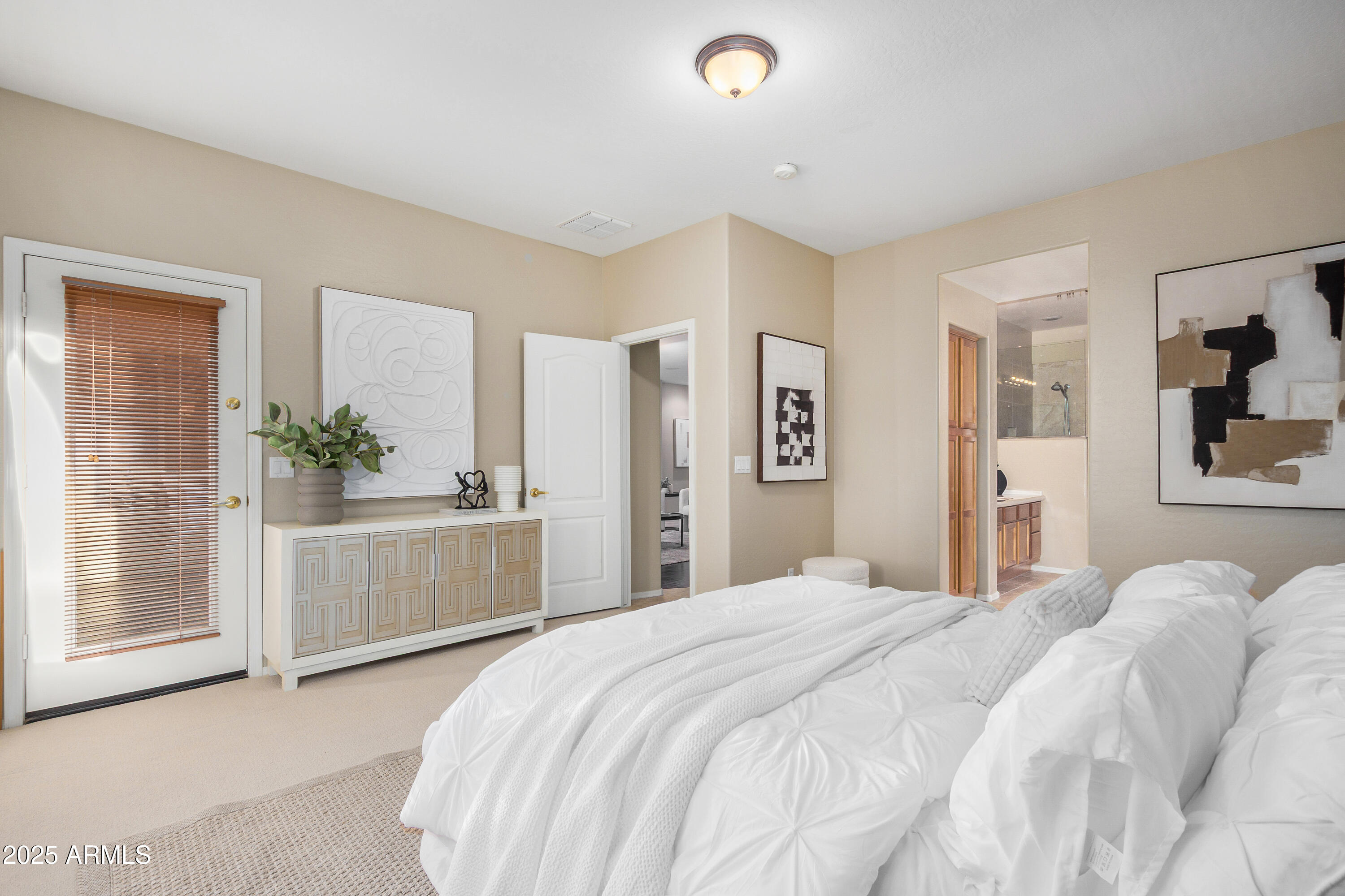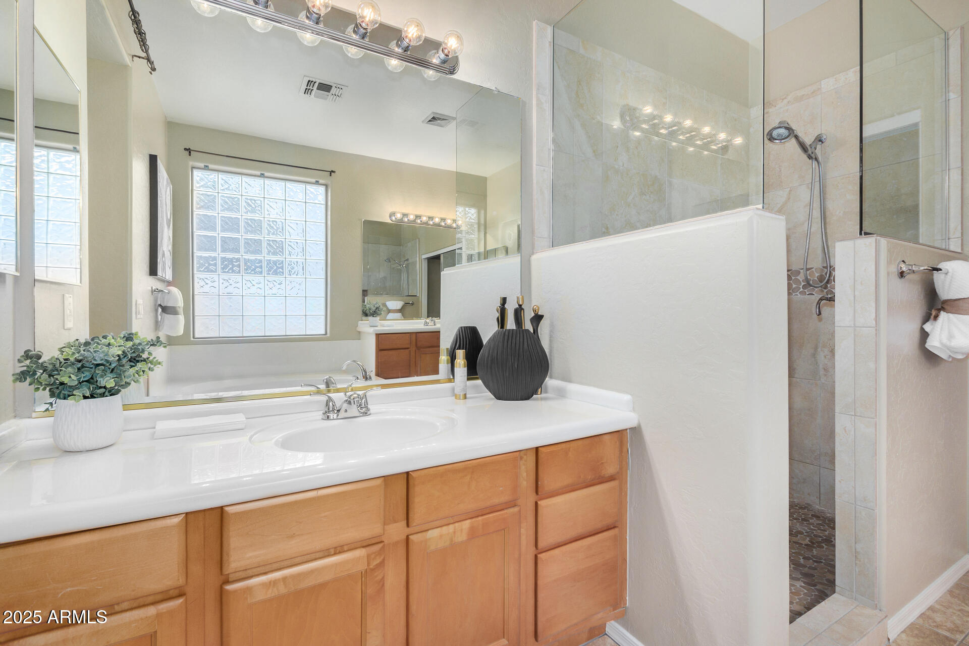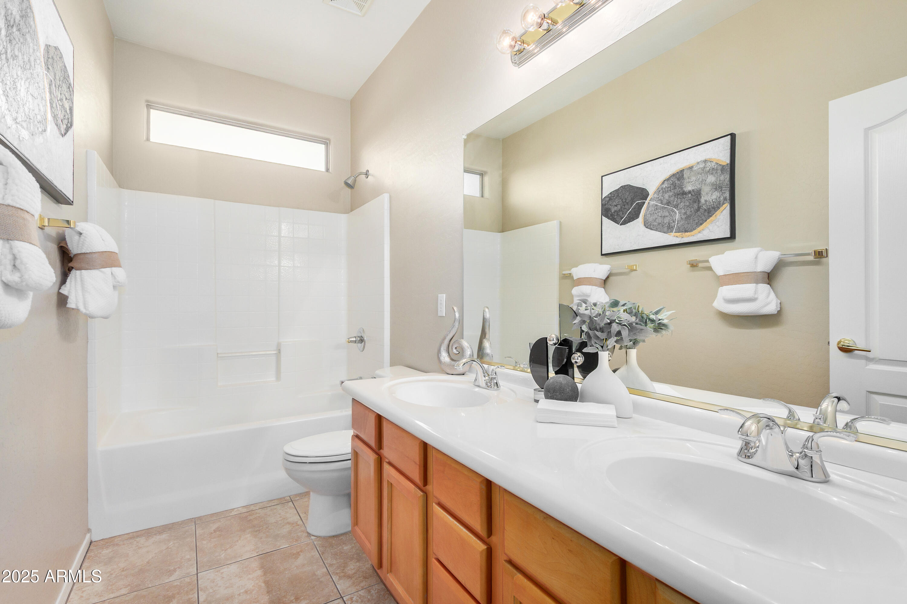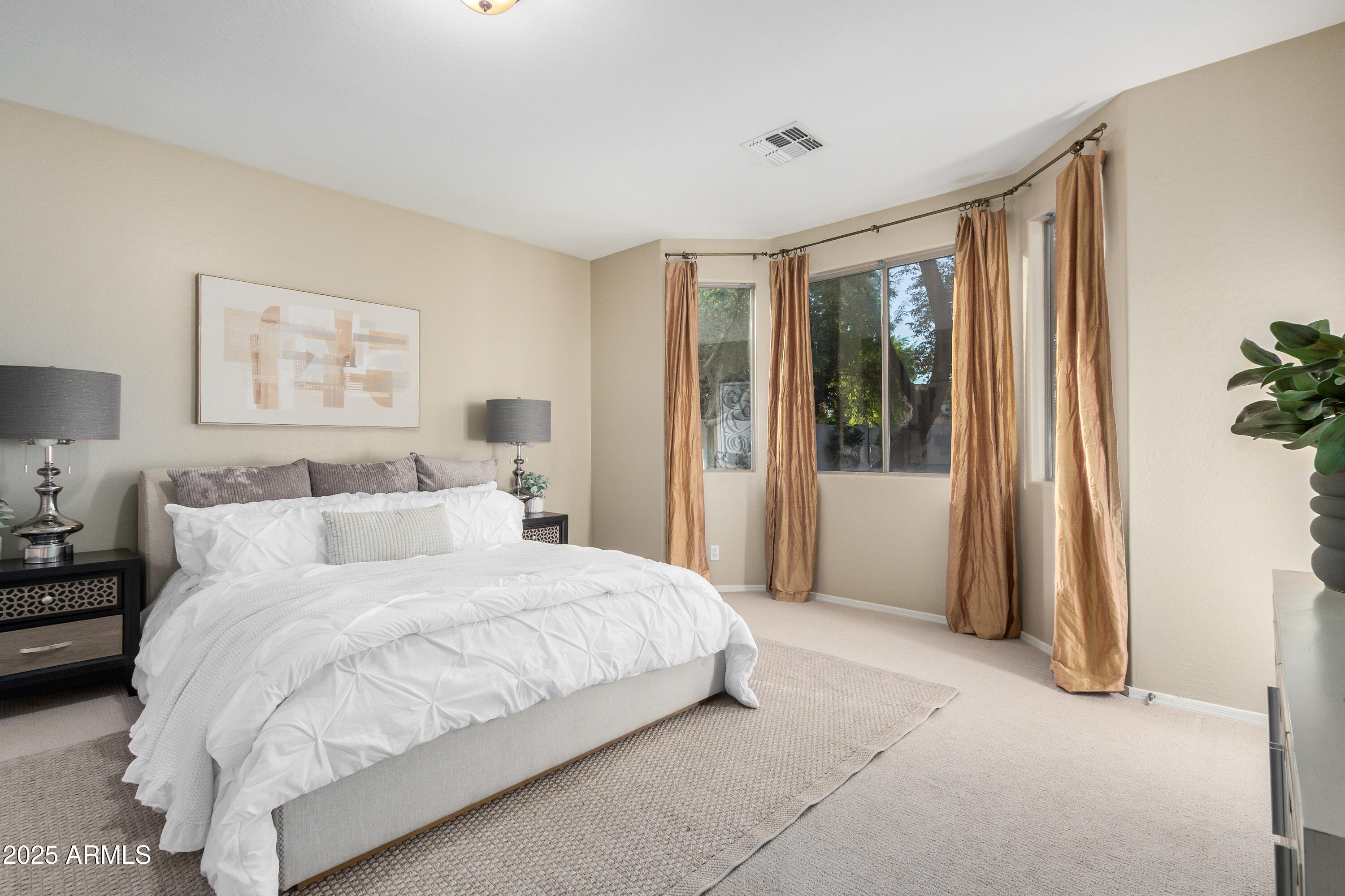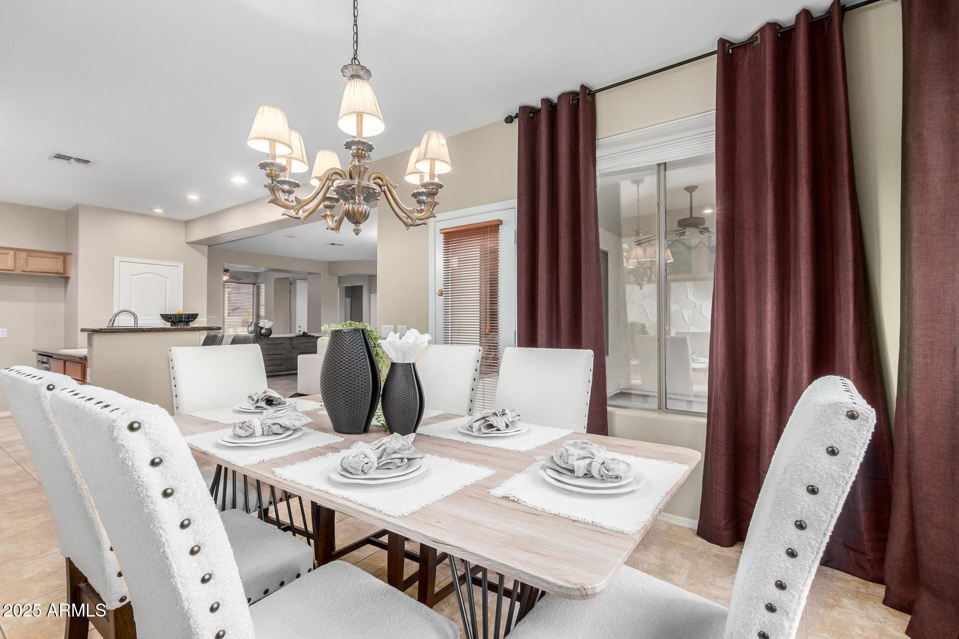 Explore Paseo Crossing and discover a 4-bedroom gem! A 2-car garage welcomes you, while a semi-open den invites cozy lounging. Great room is perfect for entertaining, complete with pre-wired surround sound, a gas fireplace, and stylish wall niches. Enjoy meals in the formal dining area or whip up culinary creations in a kitchen boasting Stainless Steel appliances, abundant cabinetry, a spacious pantry, granite counters, and a center island with a breakfast bar. Main bedroom is a serene retreat with direct backyard access, a private bathroom with dual vanities, a soaking tub, and a walk-in closet. Outside, the covered patio and generous backyard with plenty of space to design a pool oasis with sizzling BBQ. This gem isn't just a place to live, it's where memories are made! Welcome home!