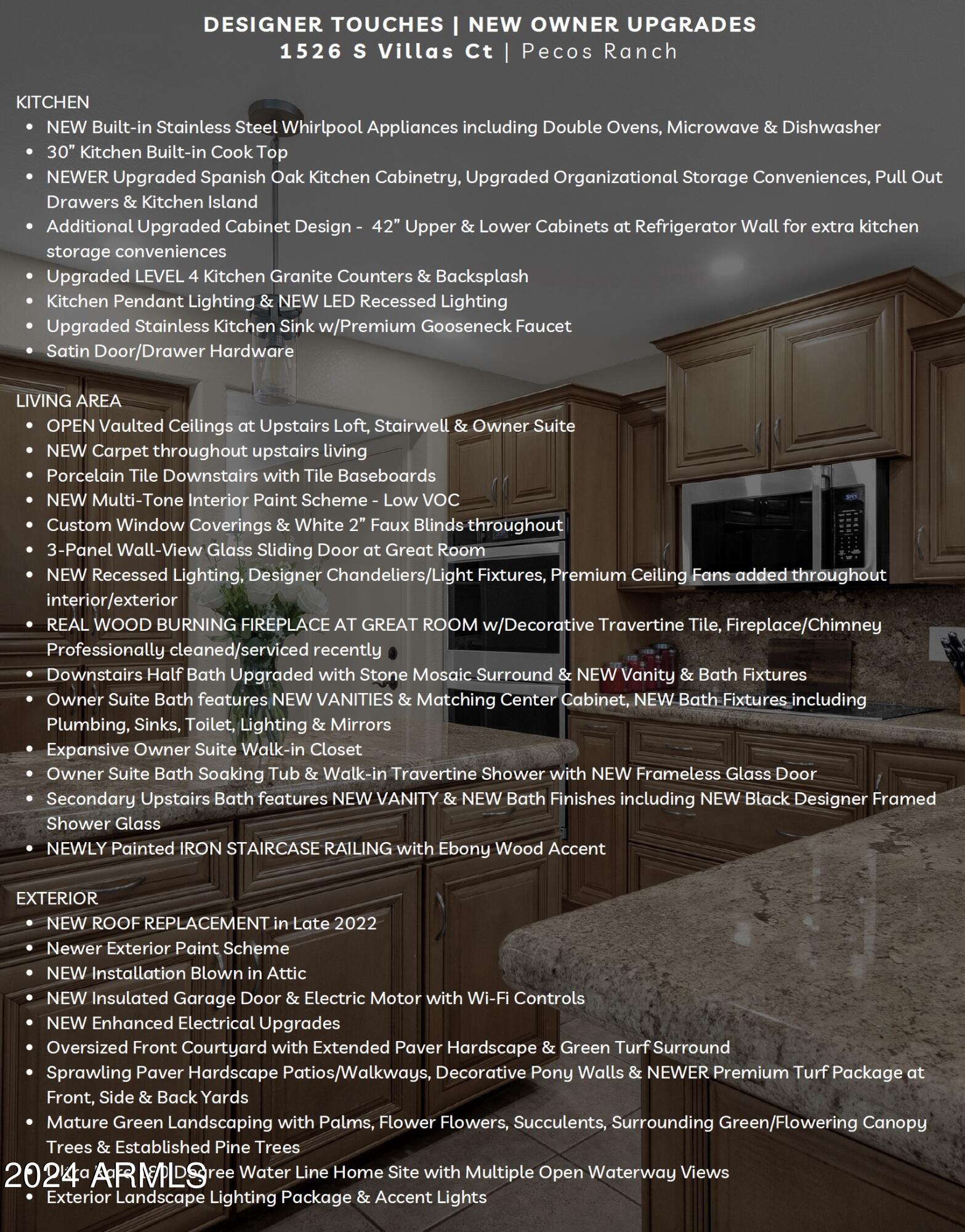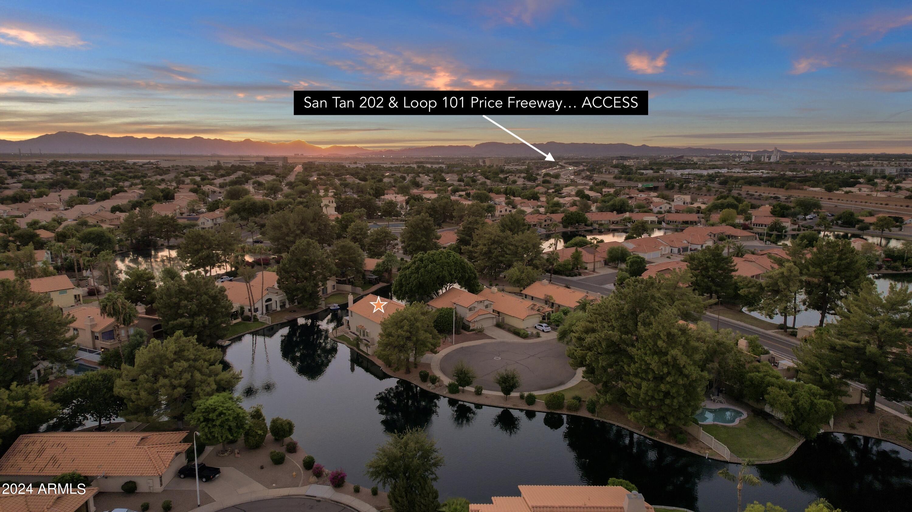 PURSUE EXTRAORDINARY ARIZONA ISLAND WATERFRONT Living in Chandler's Destination Lake community... PECOS RANCH. Easily one of the most Notable Water View/Lined Cul-de-Sac Home Sites in the master plan... soak in 270 degrees of unobstructed backyard Water Way Views w/Mature Pine/Canopy Tree Lines. This Newly Transformed Magazine Model Residence delivers that AZ Lifestyle you've been searching for! Consider it all... Centralized Chandler Proximity w/all the must-have attractions surrounding your doorstep including 101/202 Freeway Access & Price Corridor Business/Tech District, Scenic Lake Master Plan w/Boating & Fishing Privileges & Community Pool/Amenities, Excelling School Options in all direction, Desired Great Room Floor Plan influencing everyday functionality & featuring 3 beds, 2.5 baths, Upstairs Loft w/Vaulted Ceilings + 2 additional downstairs flex spaces & Central Great Room featuring Real Wood Burning Fireplace, NEW MOVE-IN READY Interior showcasing NEW OWNER UPGRADES | FEATURES | FINISHES EVERYWHERE... including Chefs Gourmet Kitchen Layout w/upgraded Kitchen Cabinetry, Granite Counters & Kitchen Island, New Built-in SS Kitchen Whirlpool Appliances, Water View Windows w/Beautiful Bright Natural Light throughout, Secluded Owner's Retreat modeling Vaulted Ceilings & SPA-STYLE Bath + Sizable Walk-in Closet, NEW CARPET, NEW PAINT, NEW BATHS, NEW LIGHTING, NEW ROOF Dec 2022, SEE ITEMIZED UPGRADE LIST FOR ALL RECENT ADDITIONS! Step outside to Open Air & Waterfront SUNSET Views all complimented with Newer Paver Hardscape Patios/Decking, Green Turf, Flowering Succulents & Grown Pygmy Palms wrapping the entire property grounds. A truly remarkable AZ "VILLA" that offers A UNIQUE RESORT WATERFRONT LIFESTYLE ALL YEAR AROUND! SCHEDULE A PRIVATE SHOWING TO SEE TODAY!